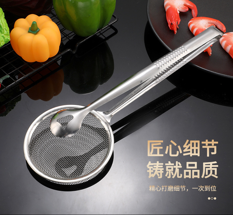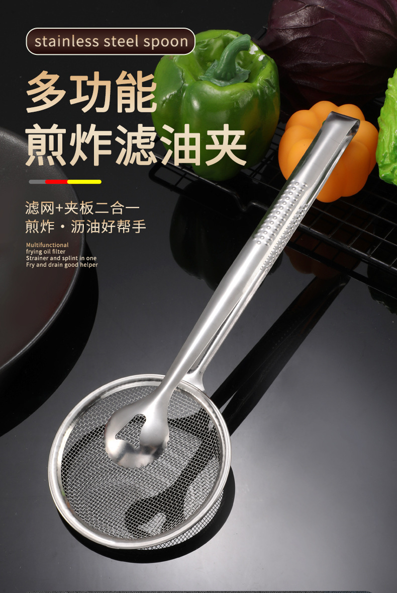 304不锈钢食品夹 多功能油炸隔油厨房牛排夹油夹煎铲二合一隔油夹