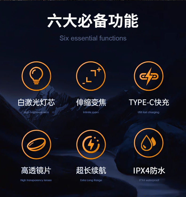 국경 폭발 알루미늄 합금 휴대용 헤드 라이트 야외 조명 다기능 긴 내구성 손전등 웨이브 유도