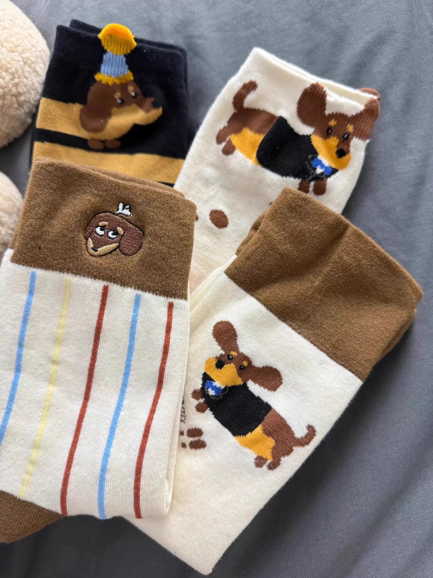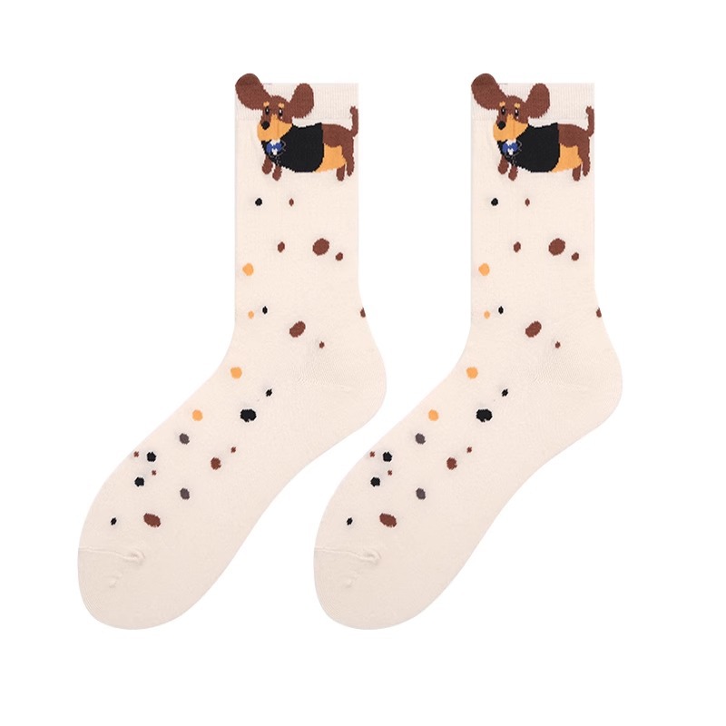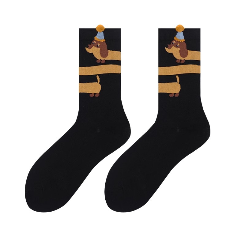 Dachshund Dog 만화 양말 어린이 한국 동대문 접기 양복 가을 땀-흡수하는 면대학 양말 귀여운스토어 가기