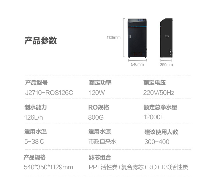 안젤 상업용 J2710-ROS126C 주방 정수기 800G 역삼투압 수돗물 필터 장비