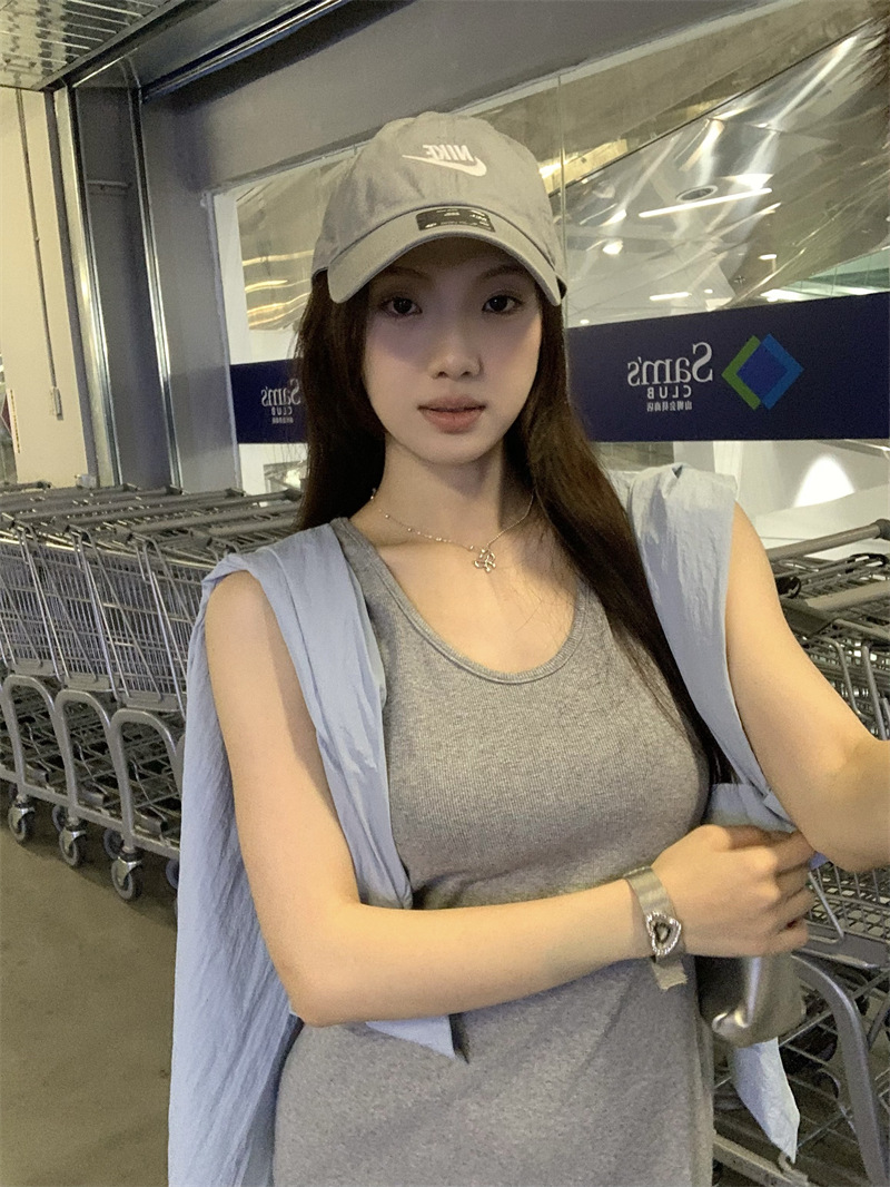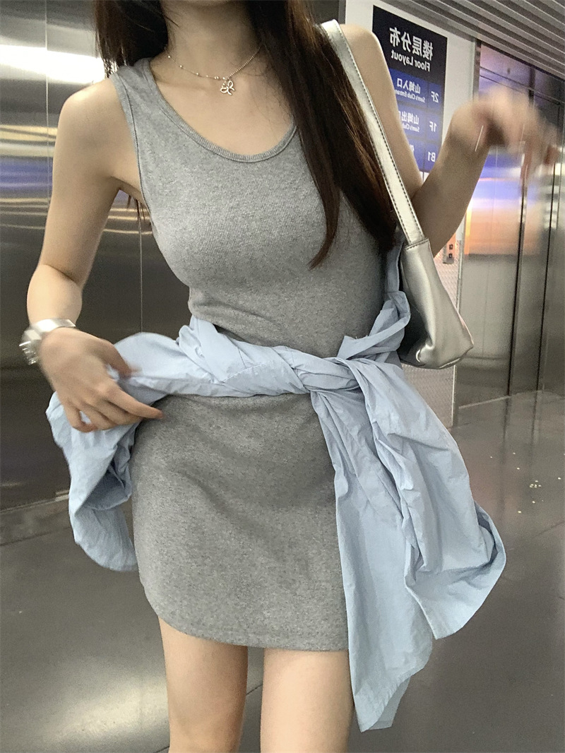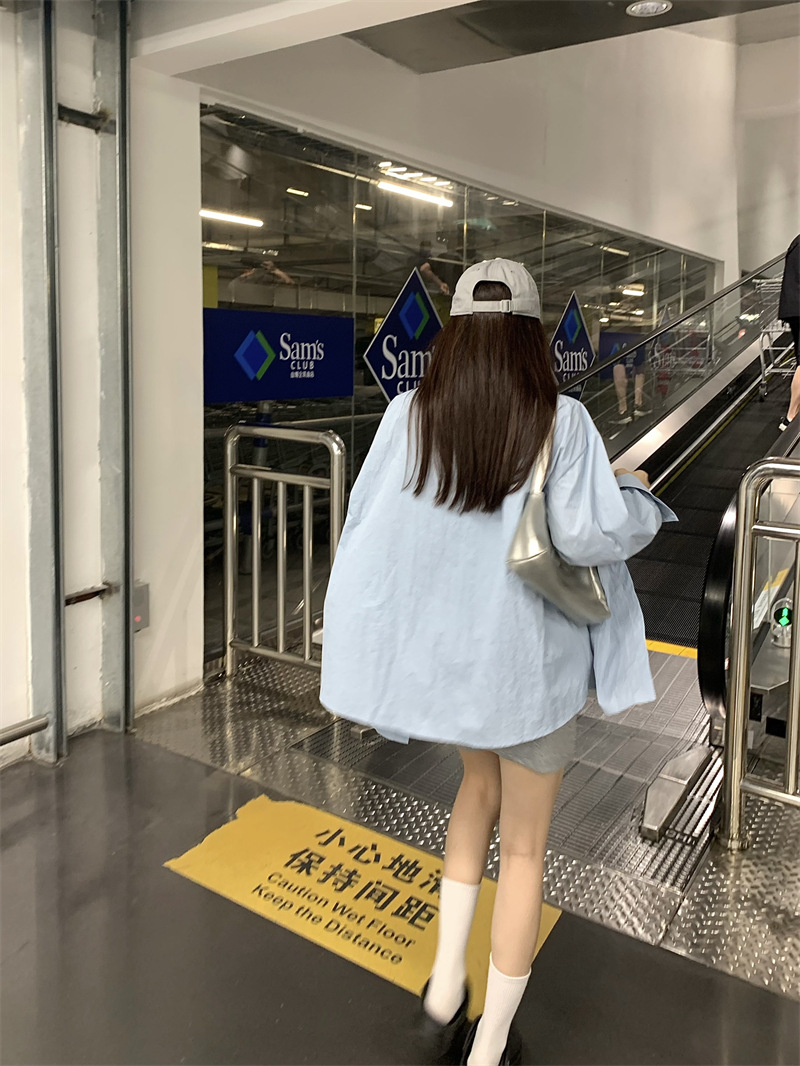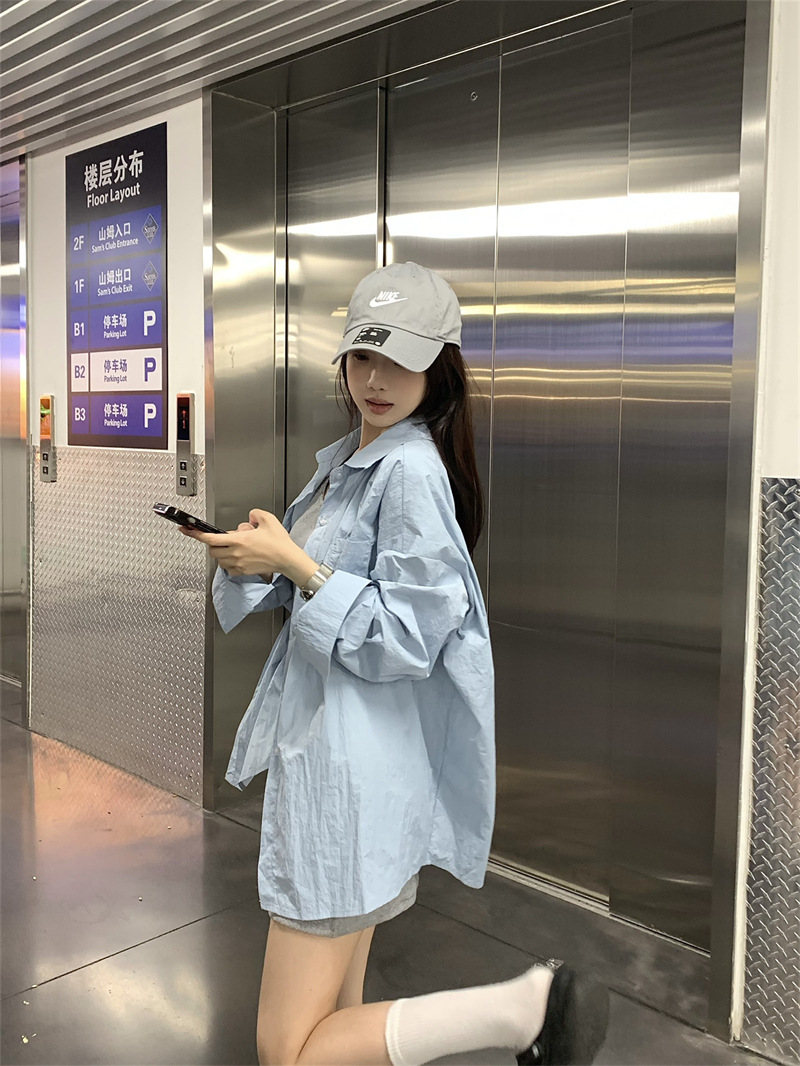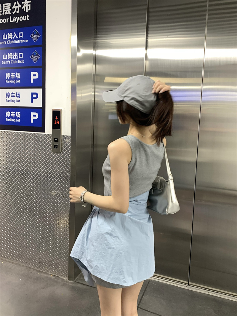 재고 리얼 샷 ~ 블루 아일랜드 게으른 조커 느슨한 긴팔 셔츠 슬림 v-neck 조끼 원피스 77883