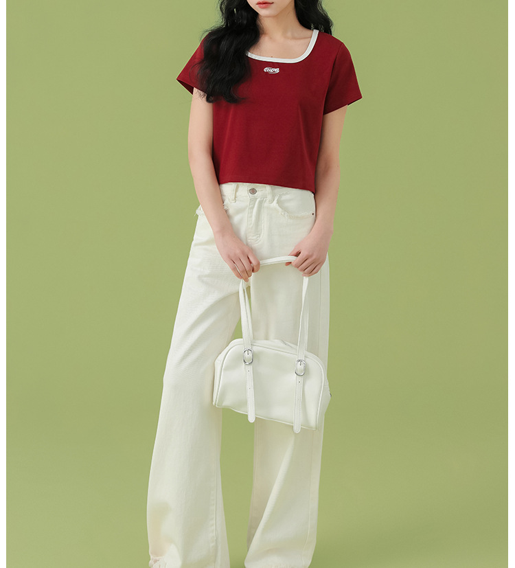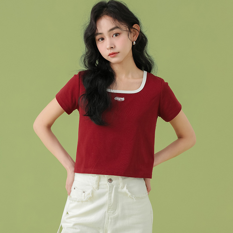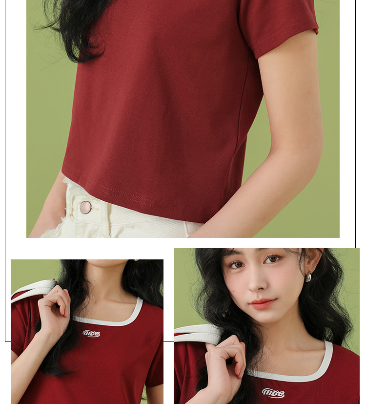 반소매 티셔츠 여성용 뉴 쇼트 탑 숄더 여름 반소매 타이트스토어 가기