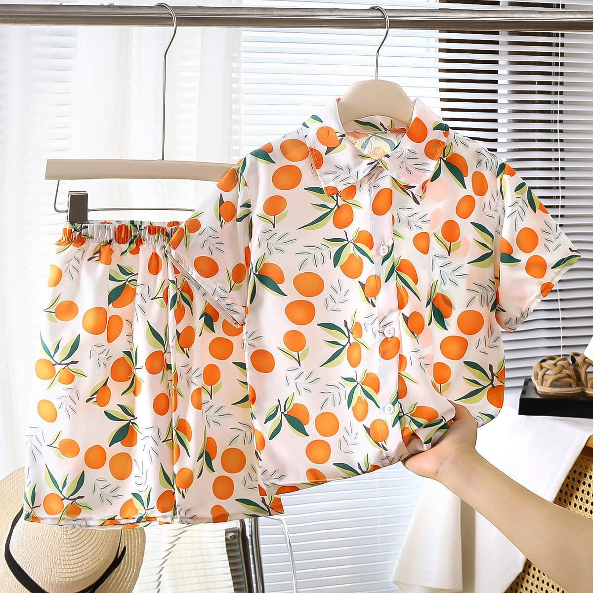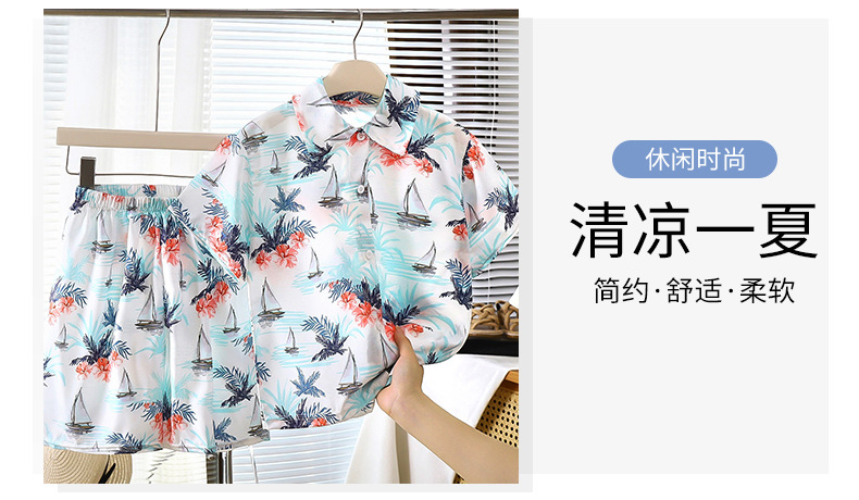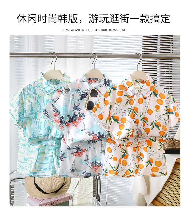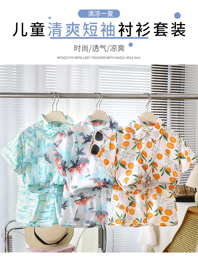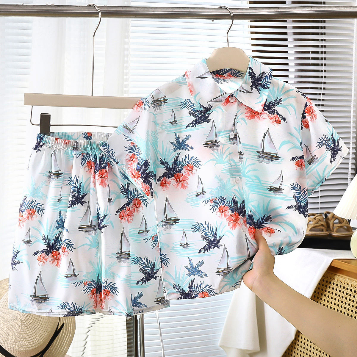 새로운 여름 캐주얼 반팔 셔츠 세트 소년의 해변 꽃 셔츠 트렌디 올매치 느슨한 셔츠 아동복스토어 가기