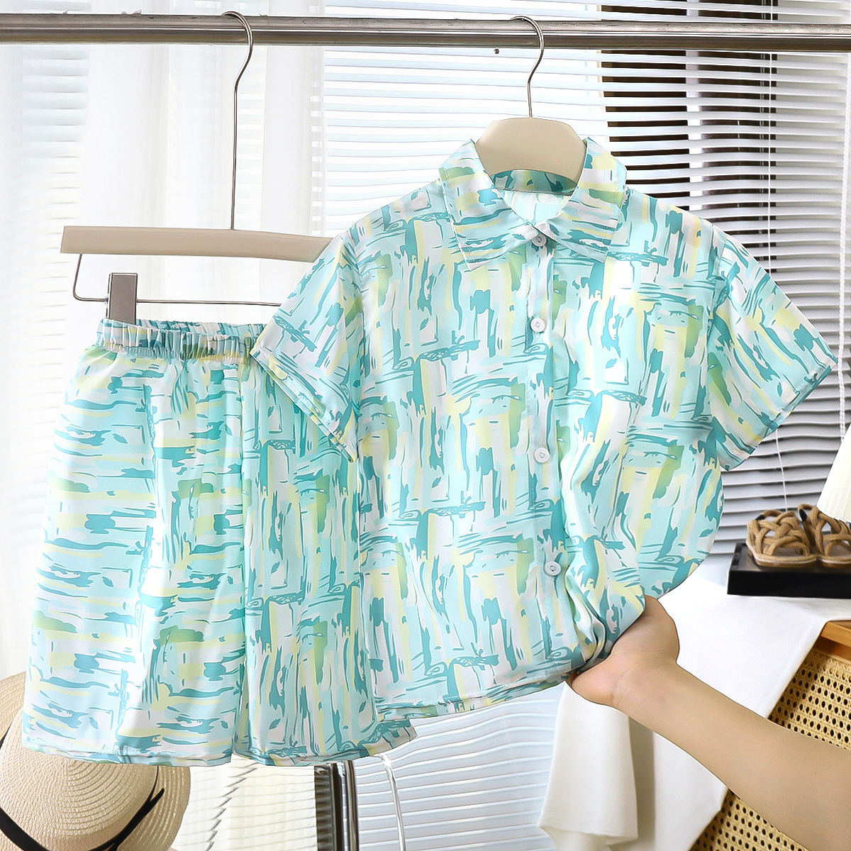 새로운 여름 캐주얼 반팔 셔츠 세트 소년의 해변 꽃 셔츠 트렌디 올매치 느슨한 셔츠 아동복
