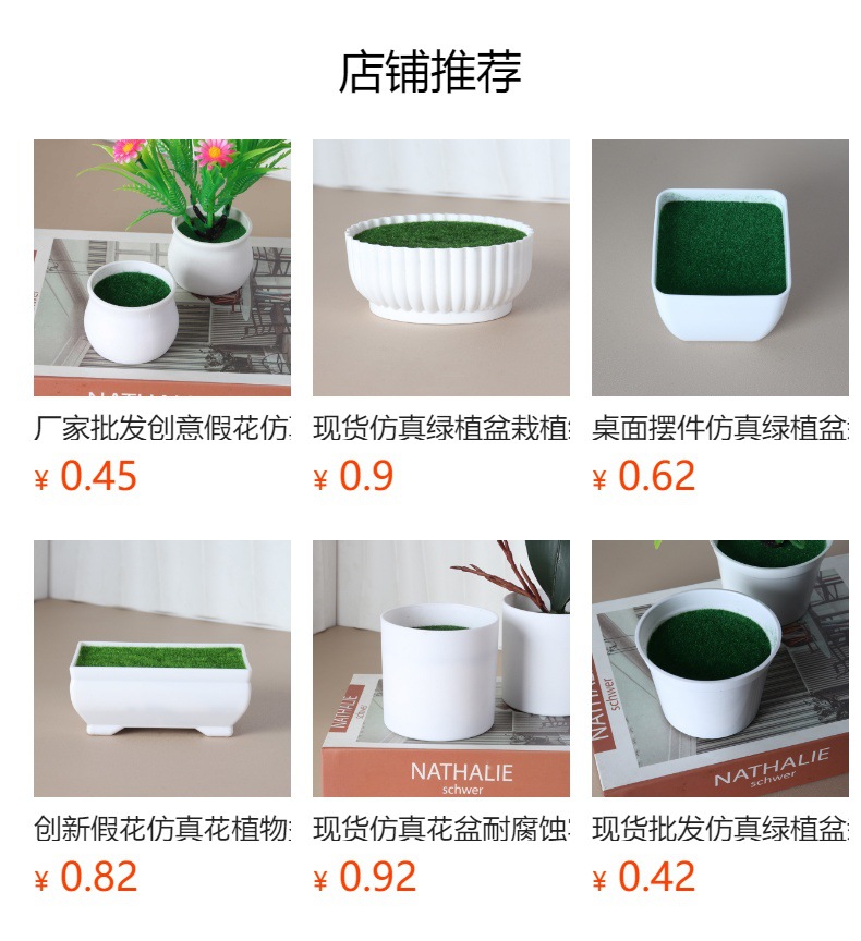 도매 인조 녹색 식물 화분, 벨벳 폼 플라스틱 화분, 인조 꽃 장식 화분, 탁상 장식품, 꽃병, 화분스토어 가기
