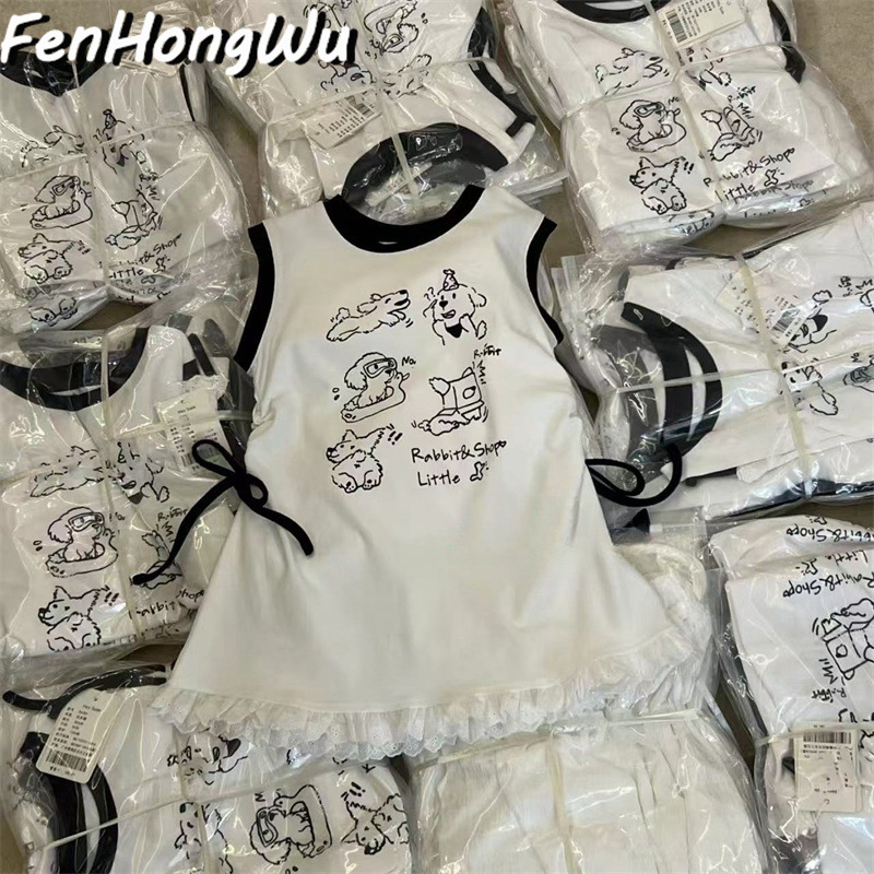 [핑크 집] 아동복 아기 귀여운 강아지 프린트 조끼 치마 달콤한 레이스 소녀의 원피스스토어 가기
