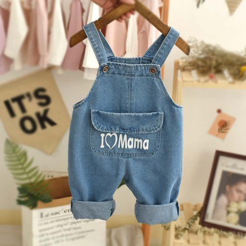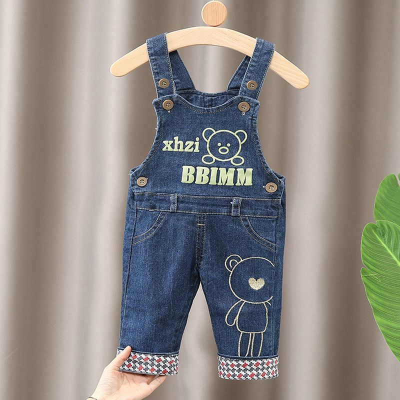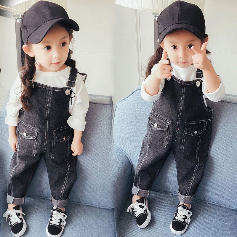 아기의 데님 버클 바지 어린이 어깨 버클 바지 소년 소녀 캐주얼 바지 유아 바지스토어 가기
