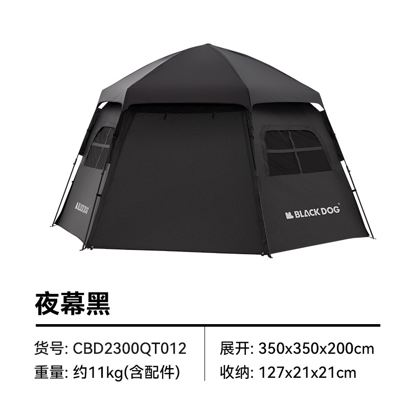 블랙 도그 블랙 도그 야외 육각형 자동 빠른 오프닝 캠핑 텐트 휴대용 접이식 블랙 고무 선 스크린 및 방비