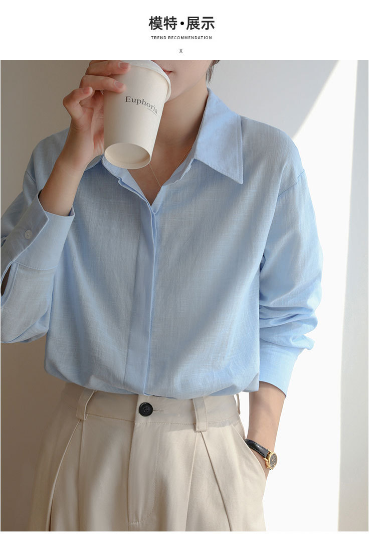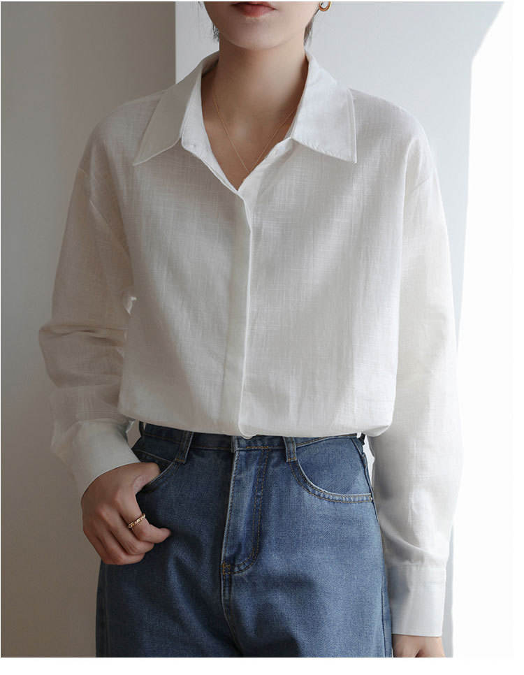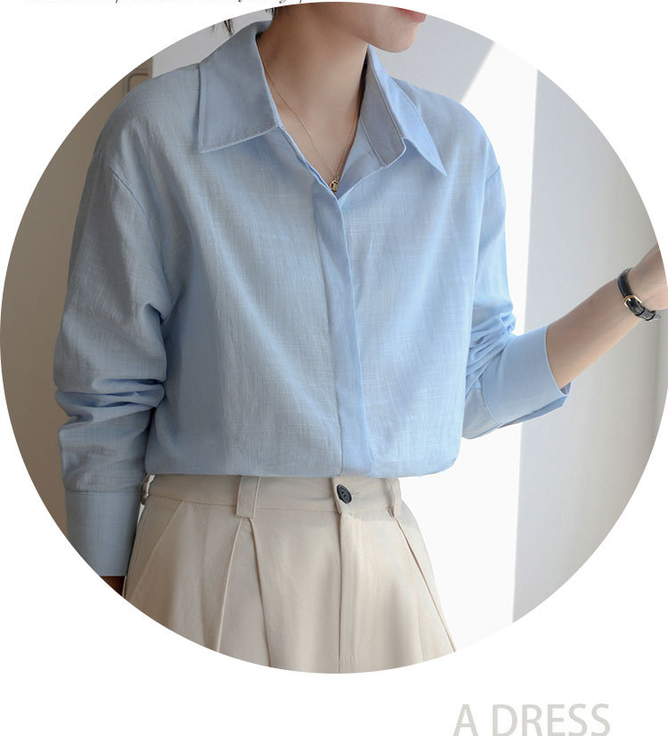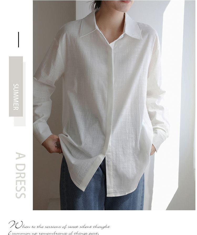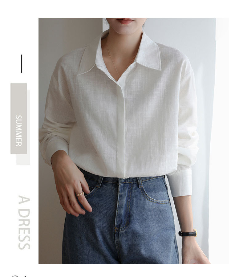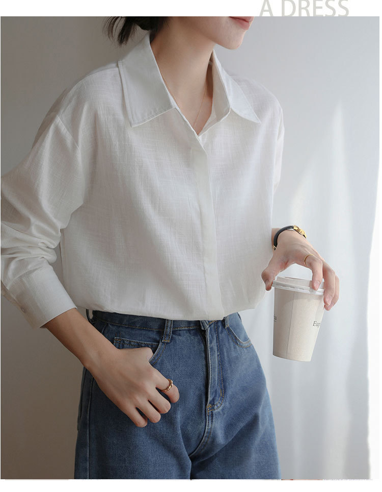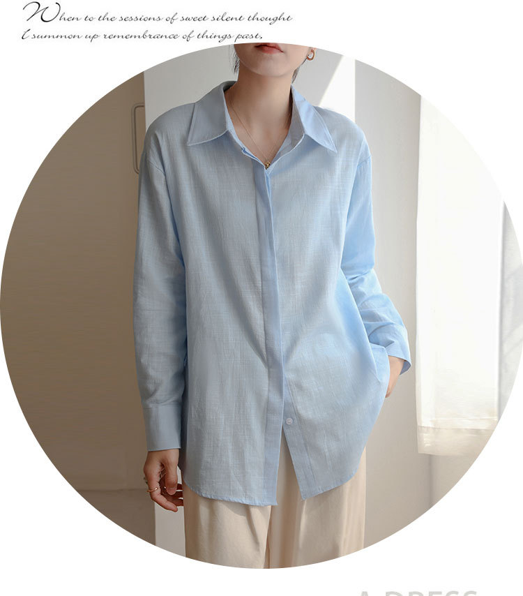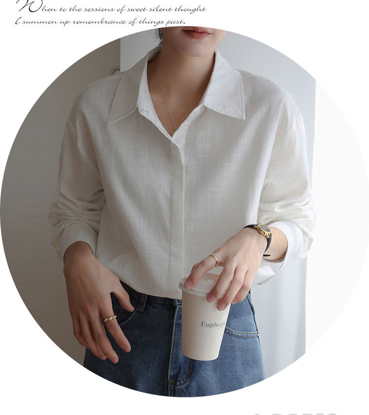 실제 촬영 2025 프랑스 흰색면과 린넨 셔츠 여성의 봄과 여름 얇은 느슨한 기질 오래된 돈 스타일 셔츠 선 스크린 탑스토어 가기