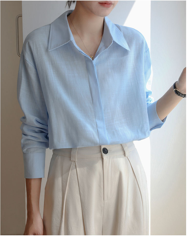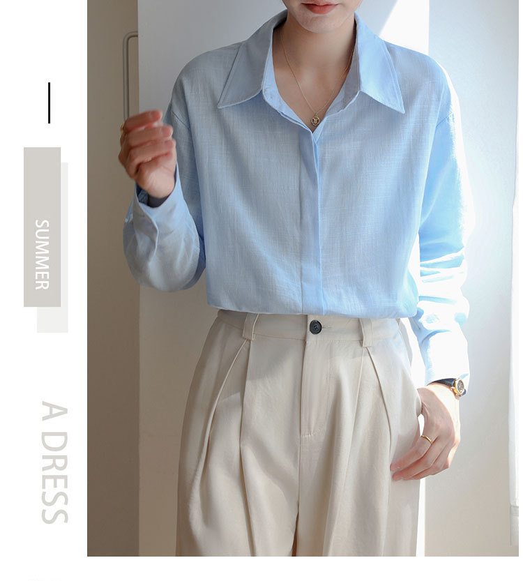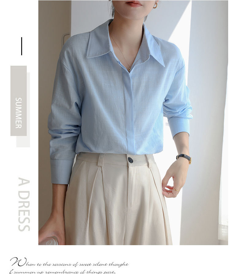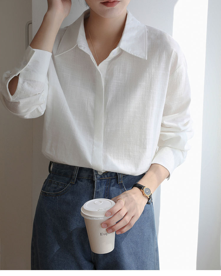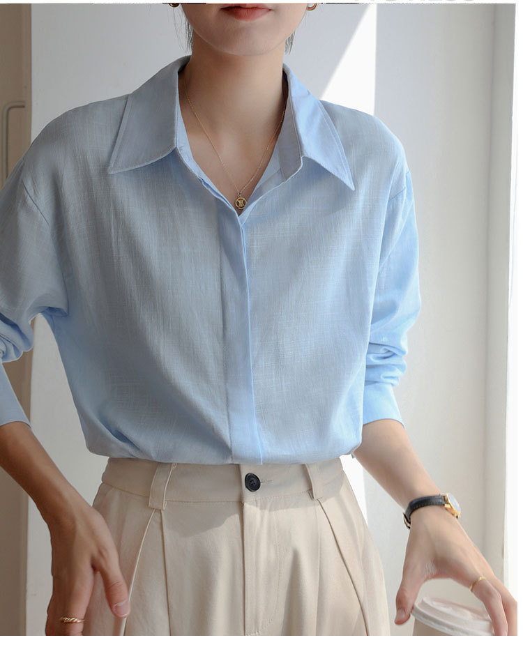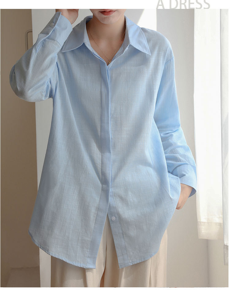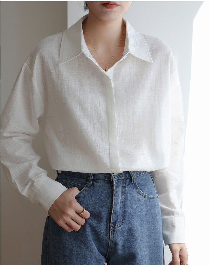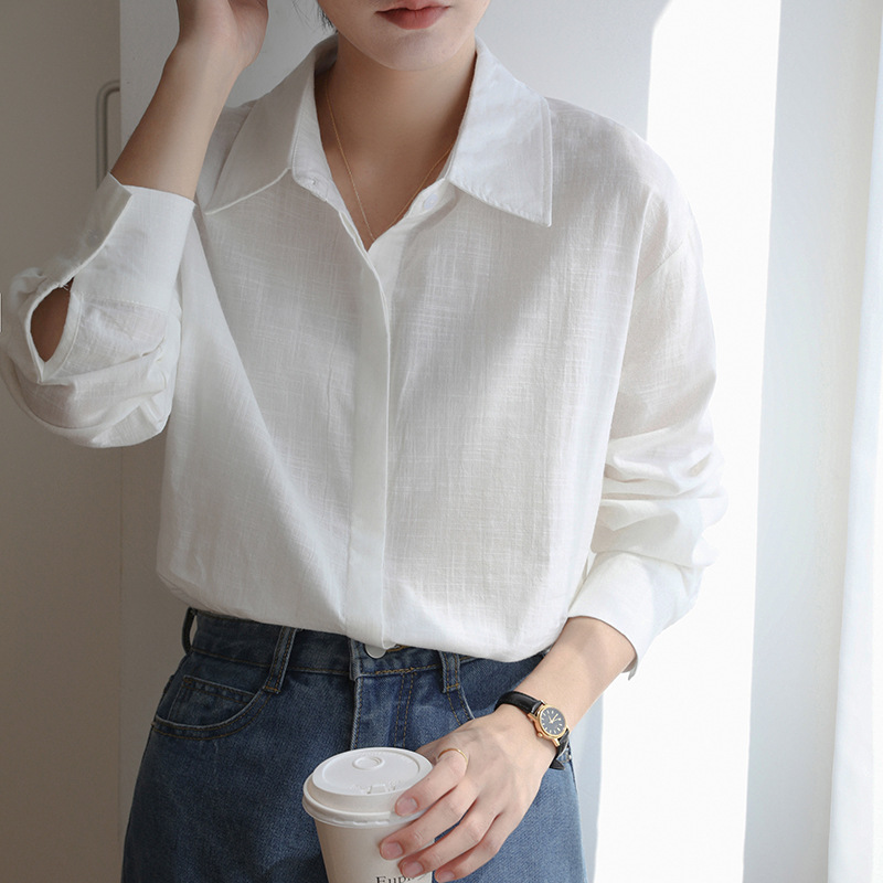 실제 촬영 2025 프랑스 흰색면과 린넨 셔츠 여성의 봄과 여름 얇은 느슨한 기질 오래된 돈 스타일 셔츠 선 스크린 탑스토어 가기