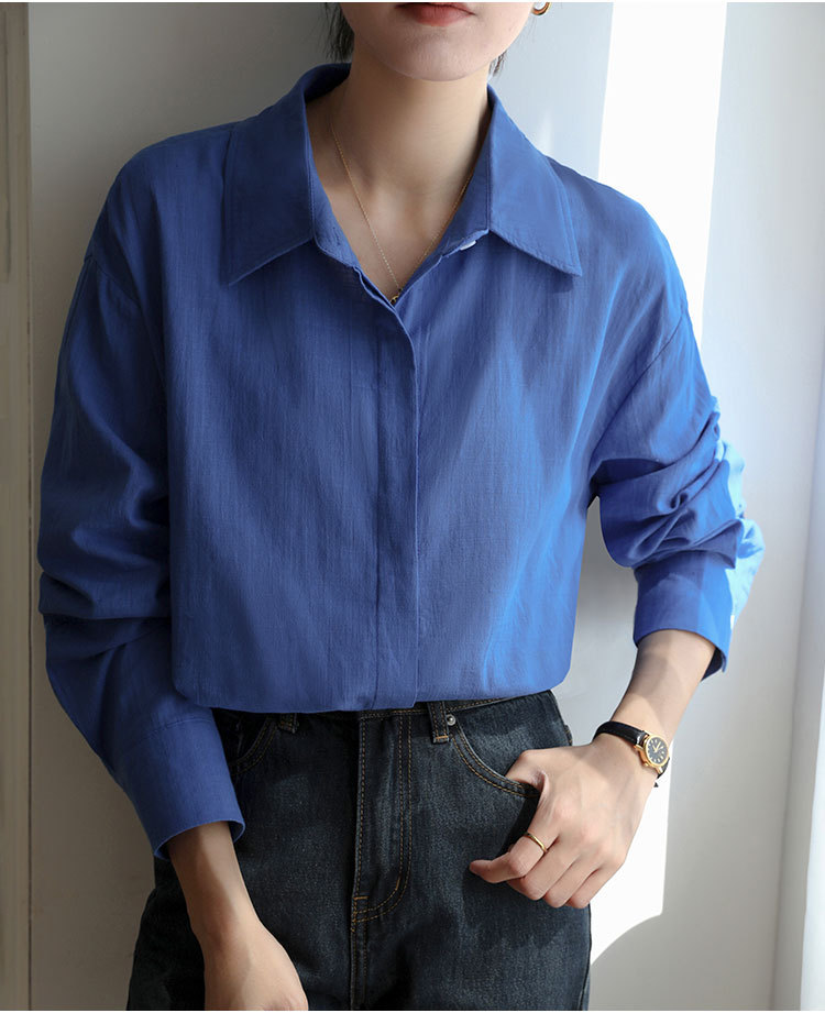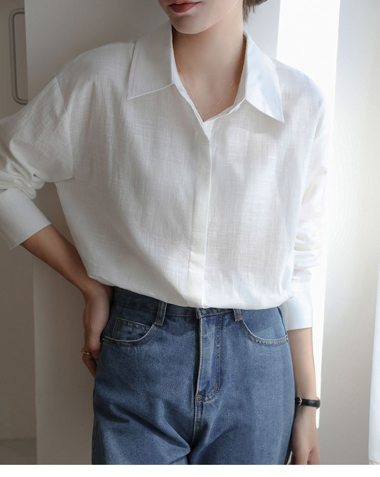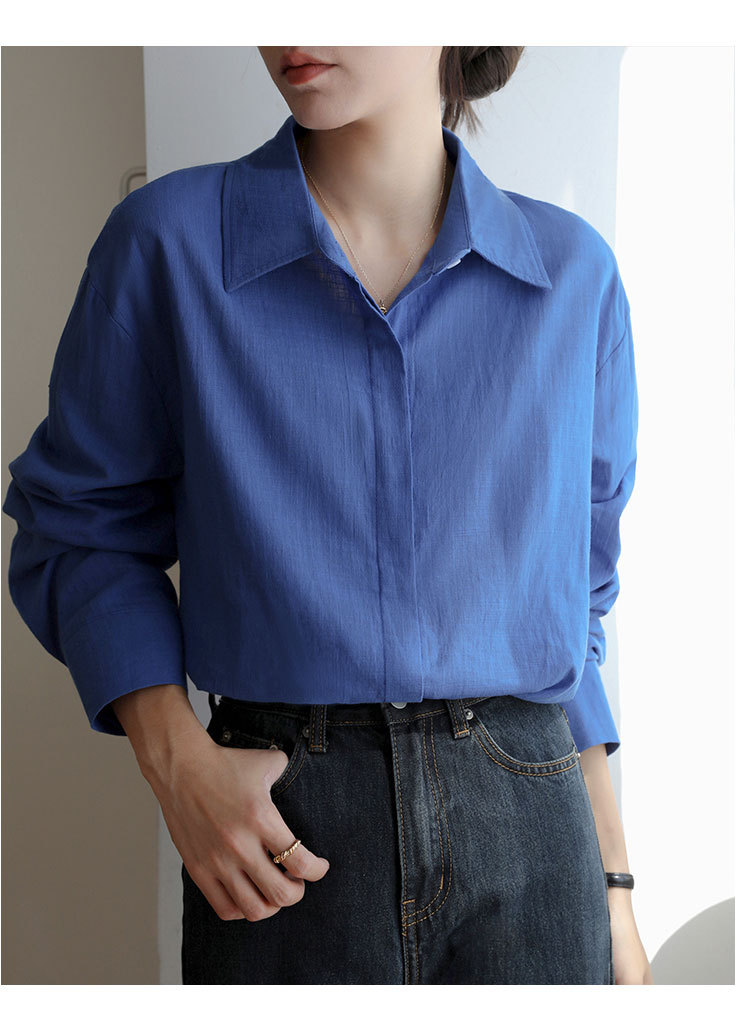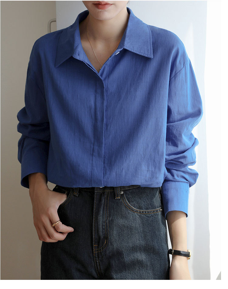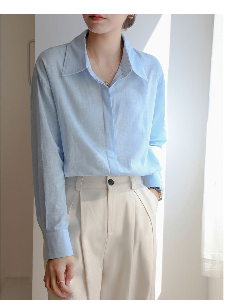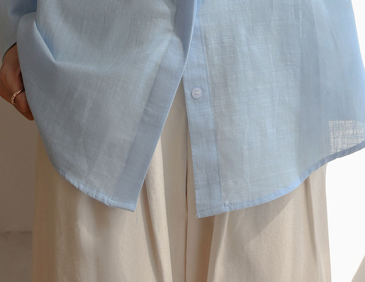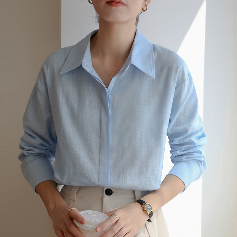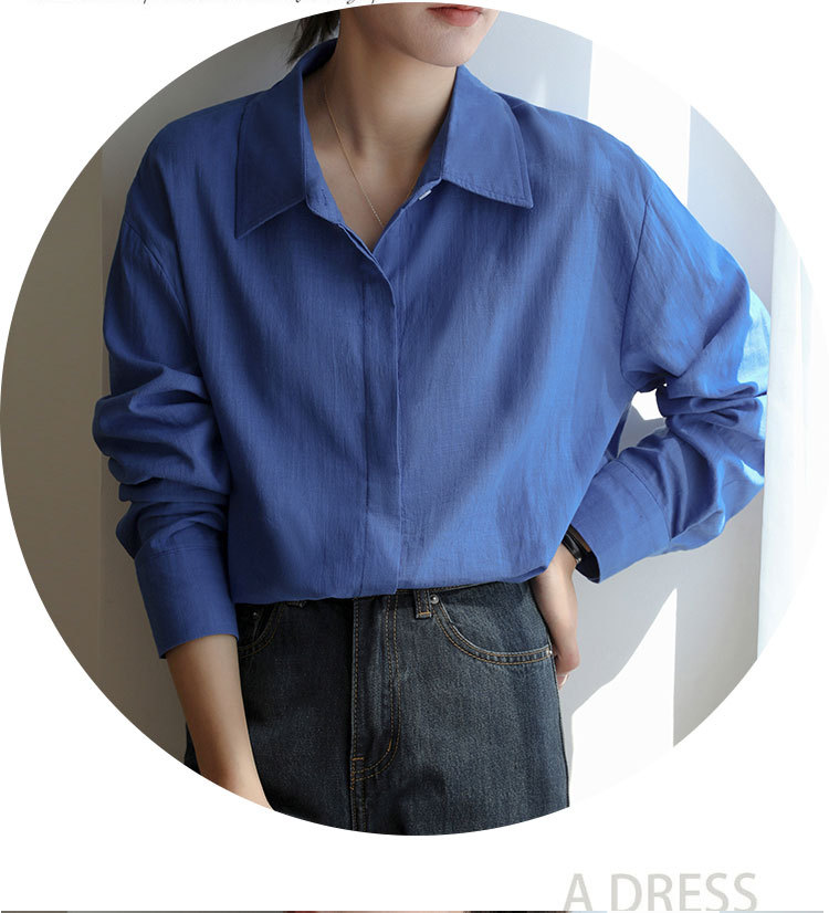 실제 촬영 2025 프랑스 흰색면과 린넨 셔츠 여성의 봄과 여름 얇은 느슨한 기질 오래된 돈 스타일 셔츠 선 스크린 탑스토어 가기