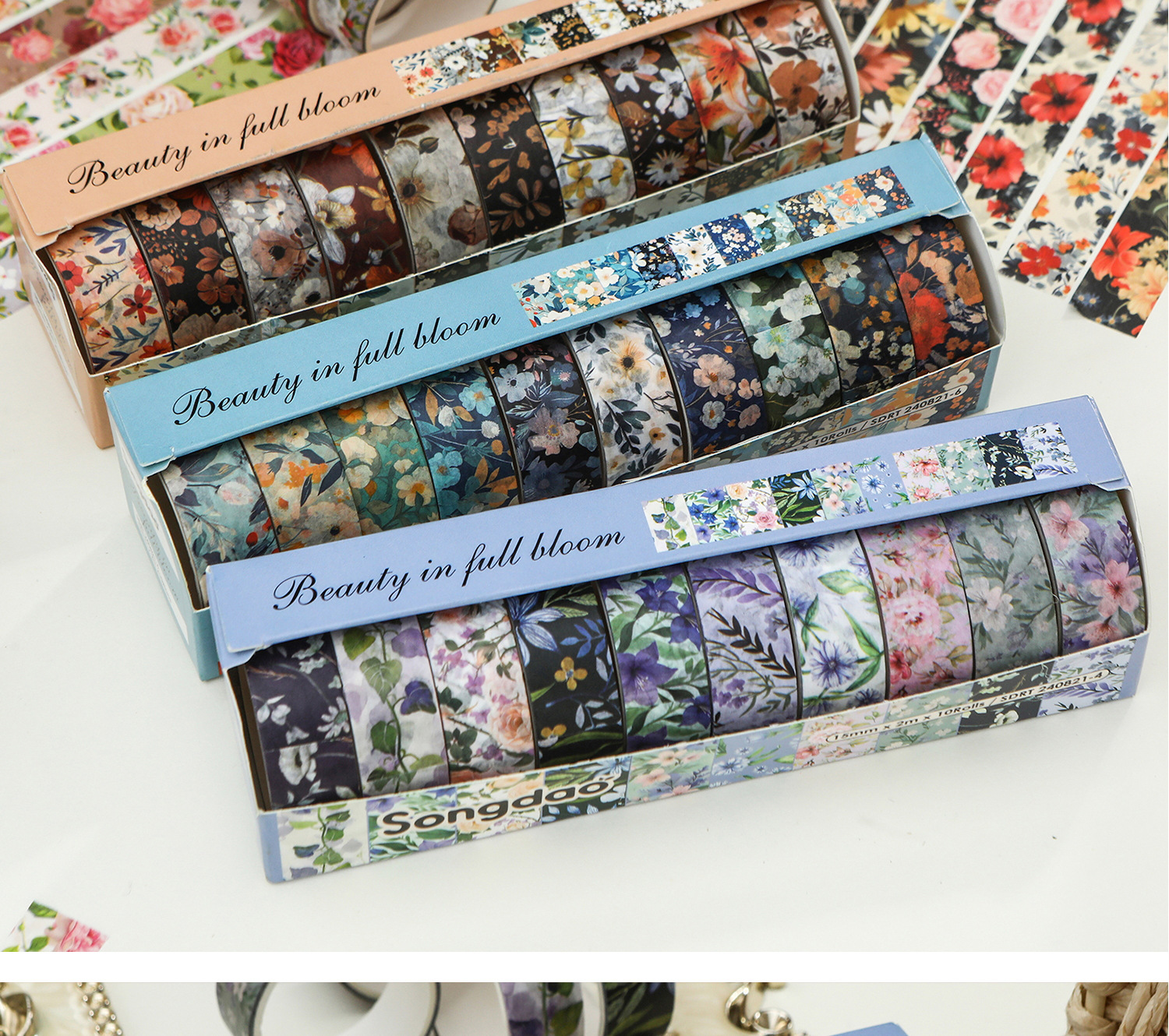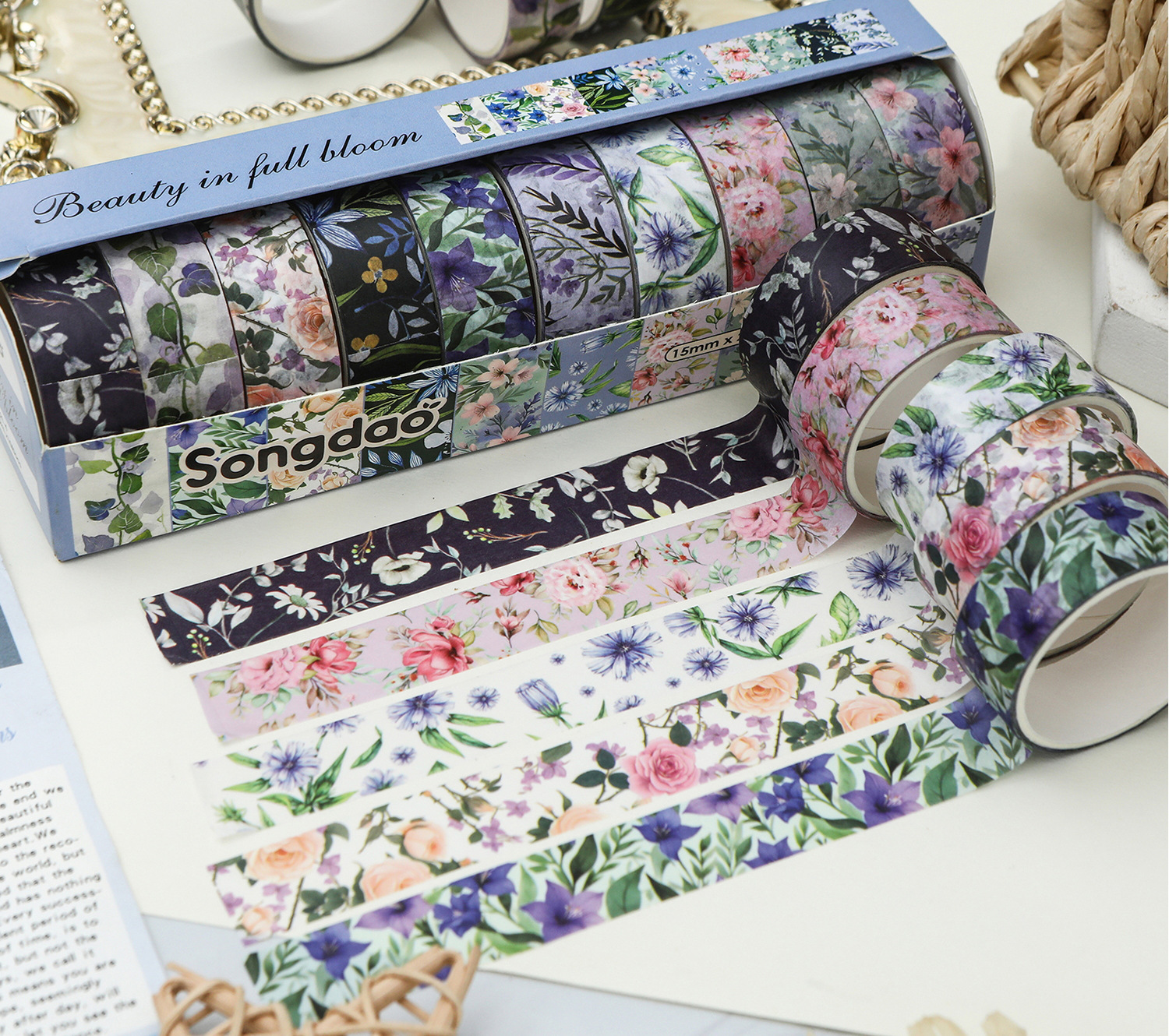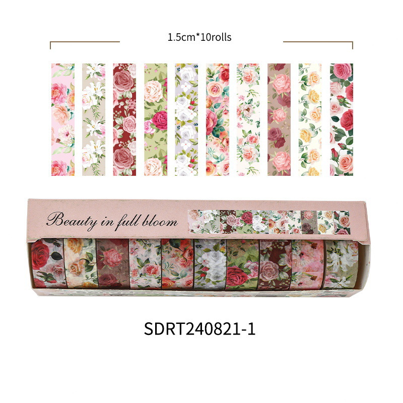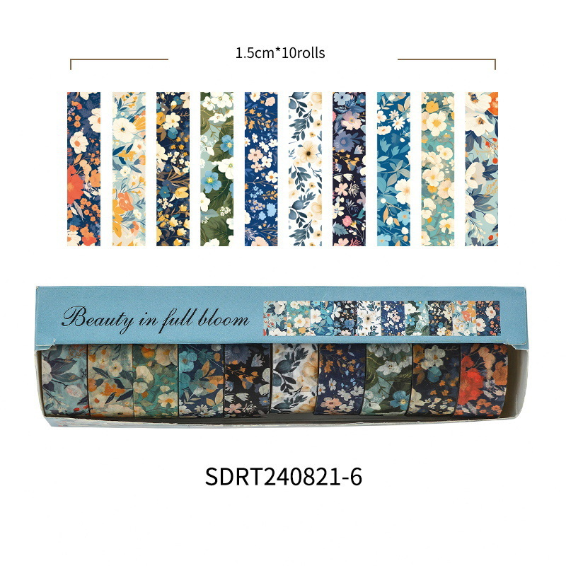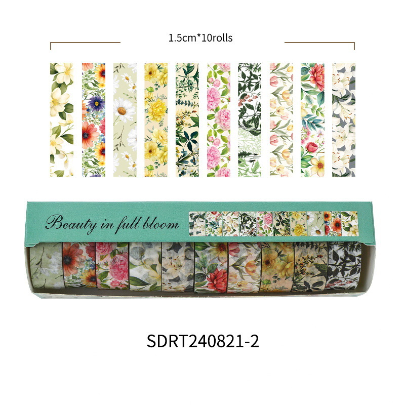 화려하고 종이 테이프 세트 아름다운 창조적 인 꽃 손 계정 테이프 DIY 풍부한 패턴 꽃 스티커스토어 가기