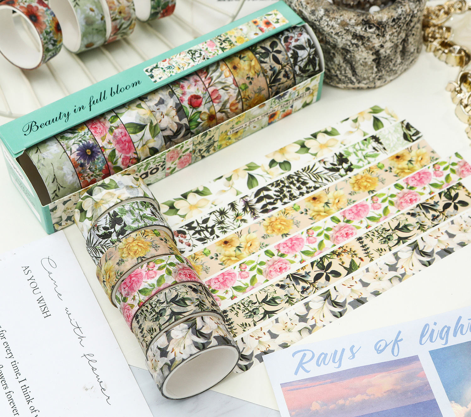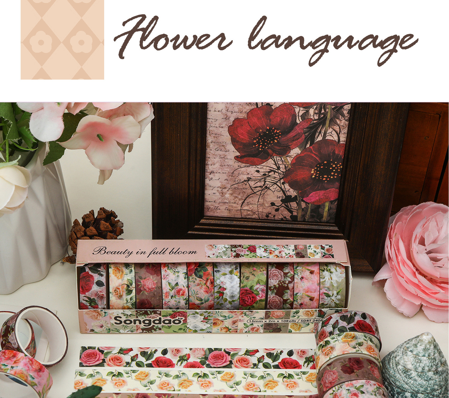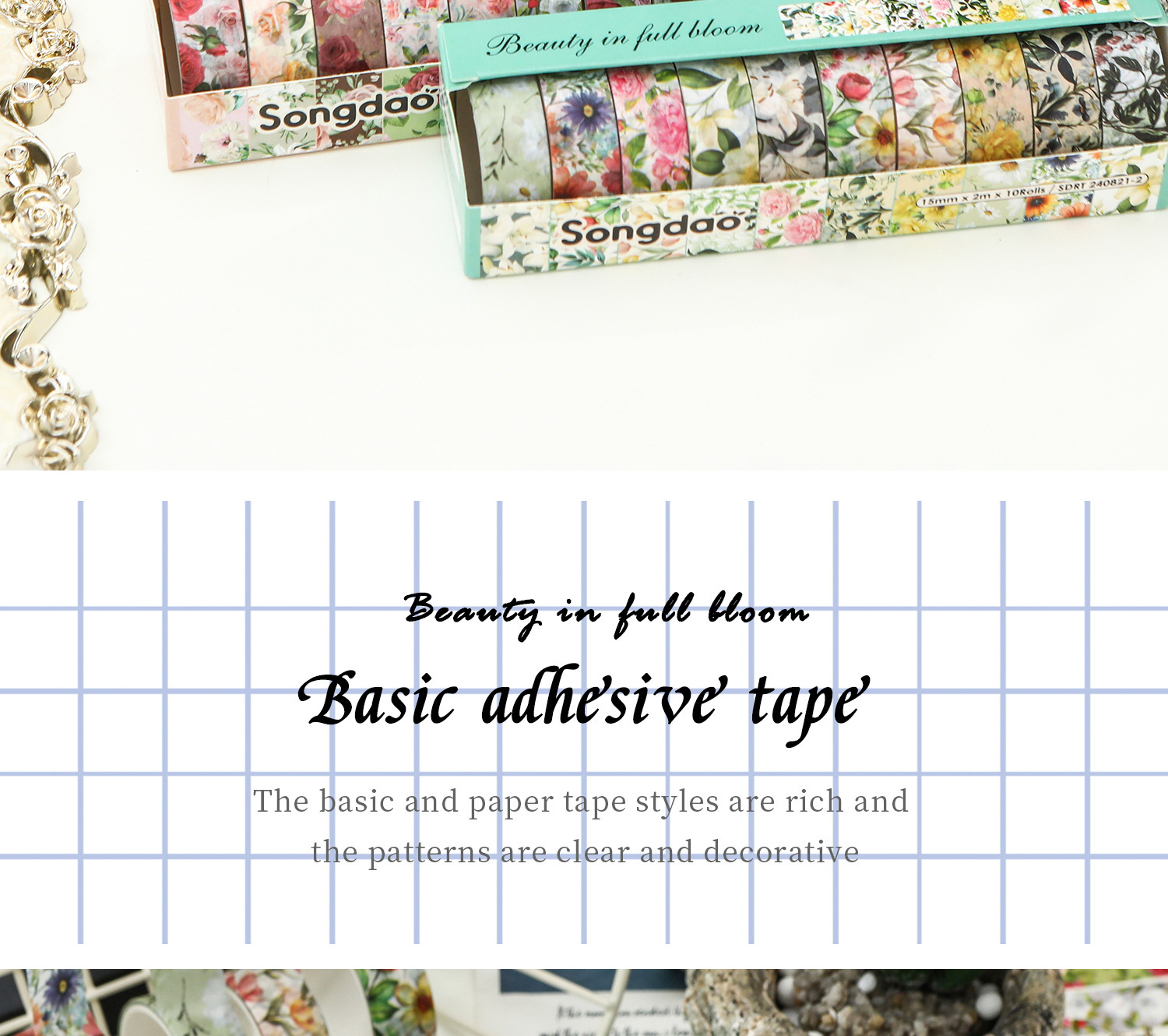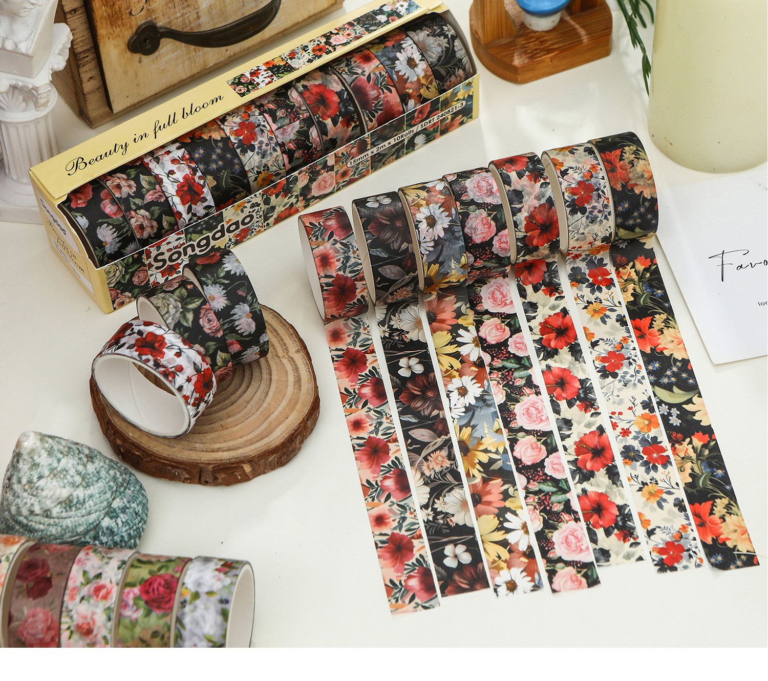 화려하고 종이 테이프 세트 아름다운 창조적 인 꽃 손 계정 테이프 DIY 풍부한 패턴 꽃 스티커스토어 가기