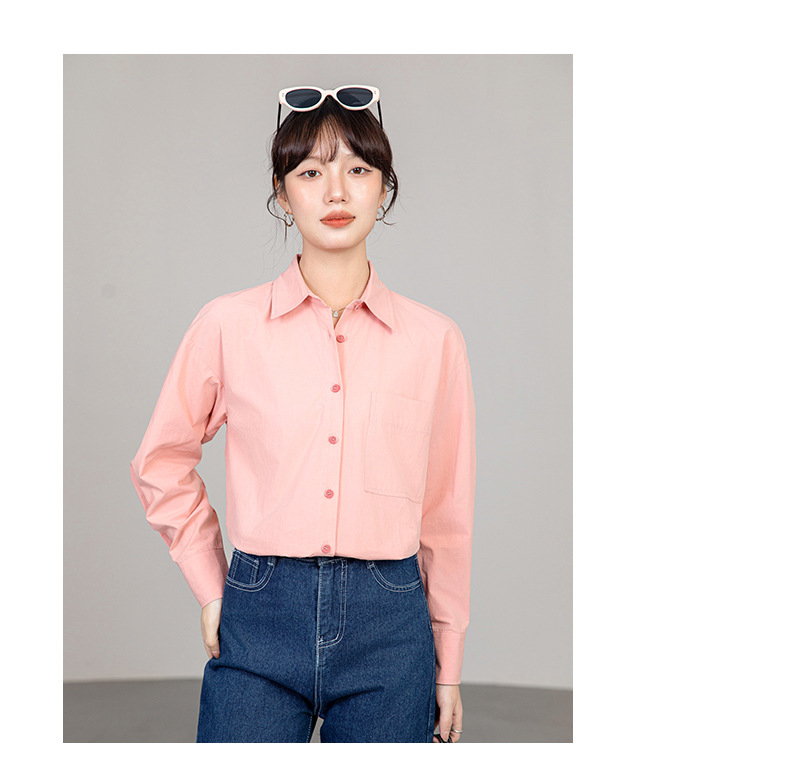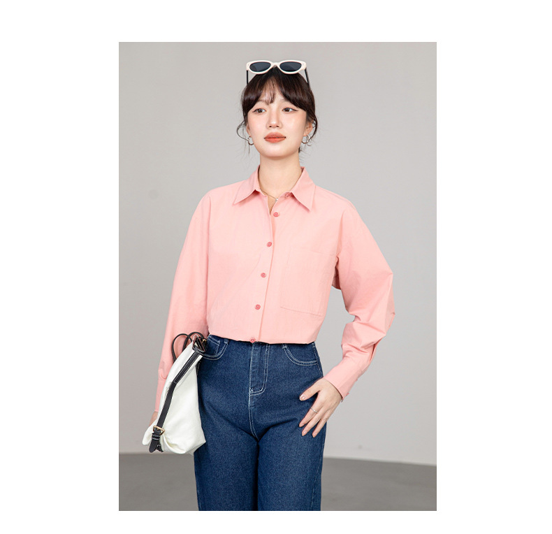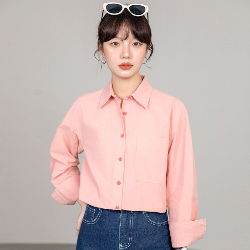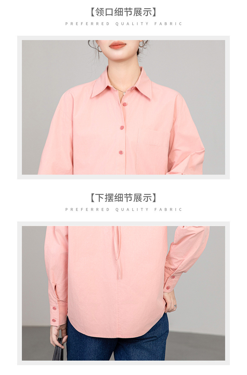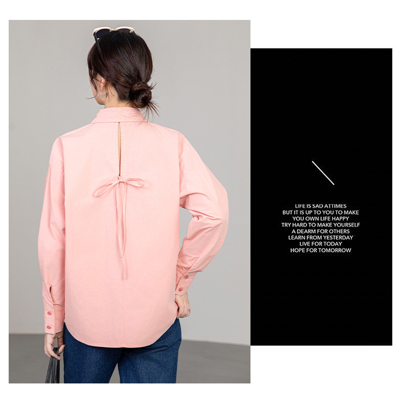 순면 긴팔 핑크 셔츠 여성 디자인 센스 니쉬 스트랩 셔츠 2025 봄 게으른 편안한 루즈 탑스토어 가기