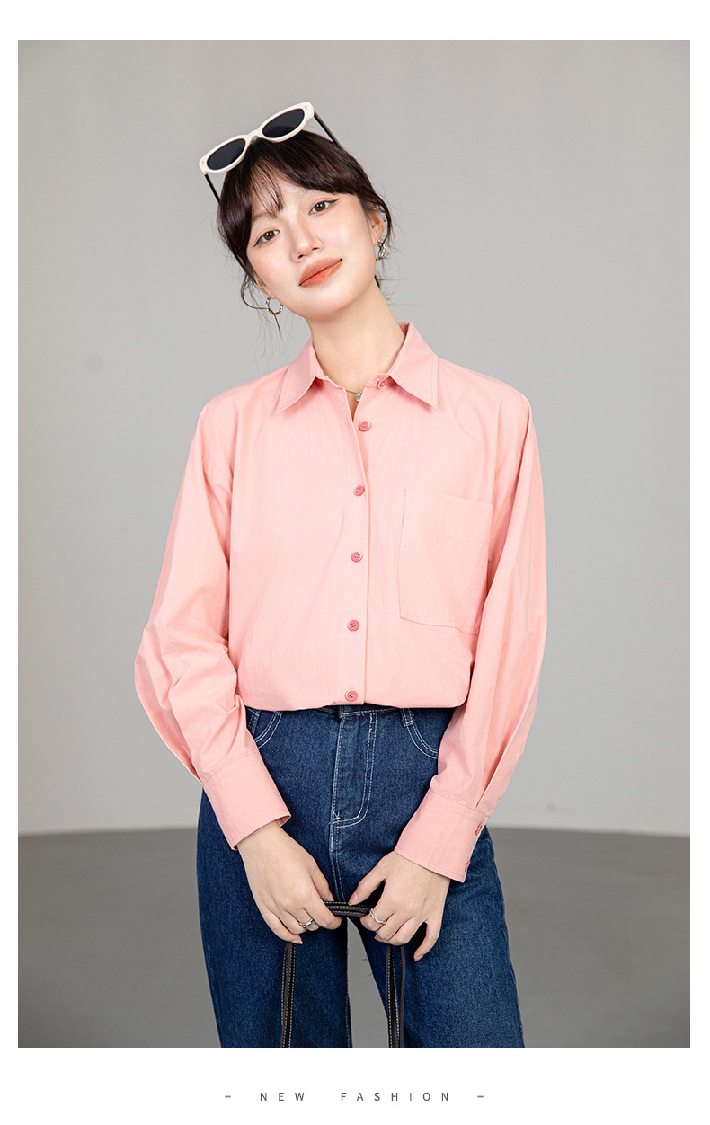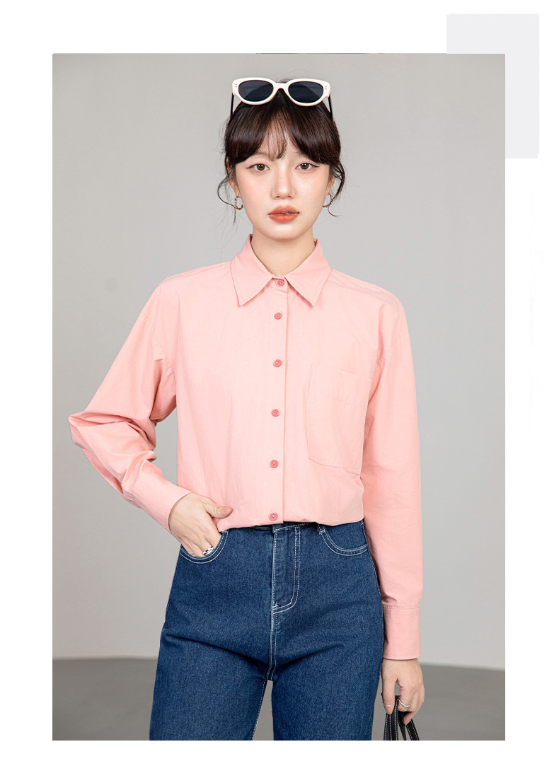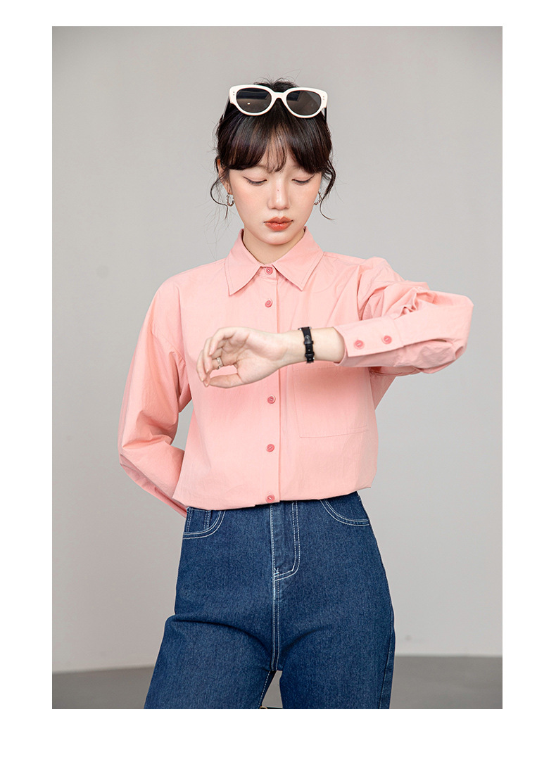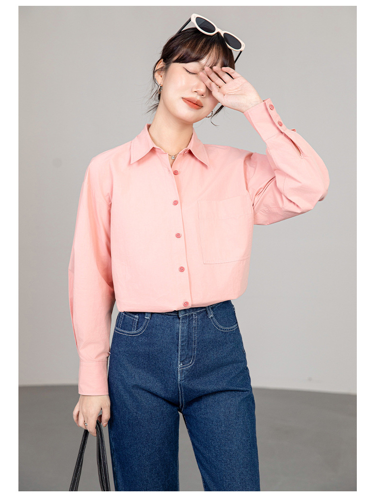 순면 긴팔 핑크 셔츠 여성 디자인 센스 니쉬 스트랩 셔츠 2025 봄 게으른 편안한 루즈 탑스토어 가기