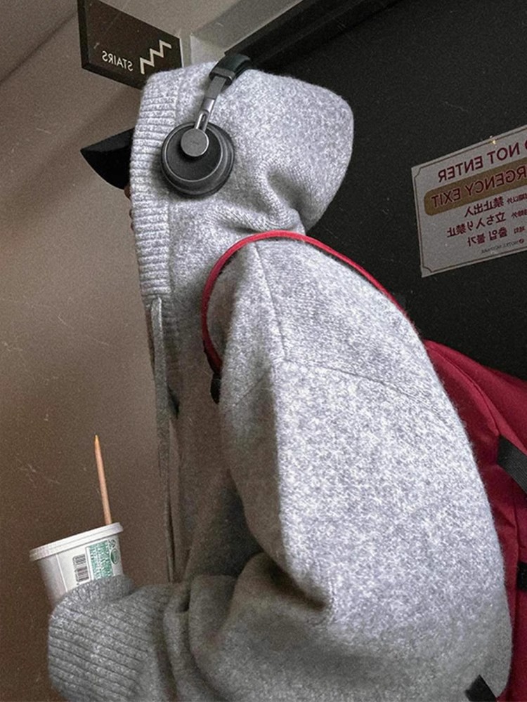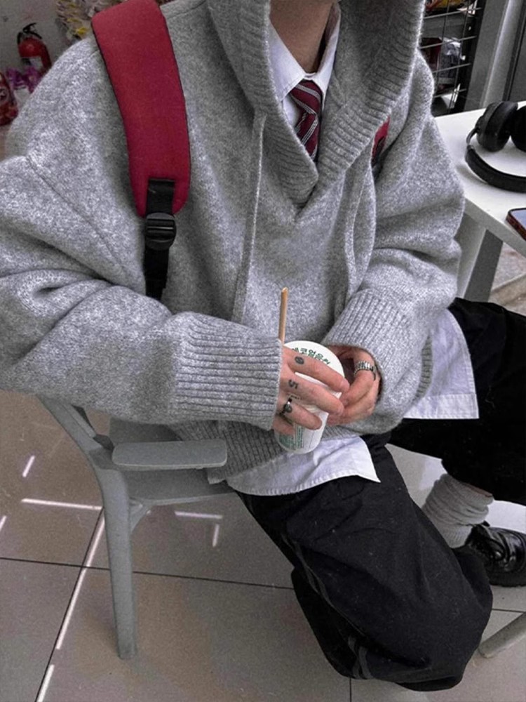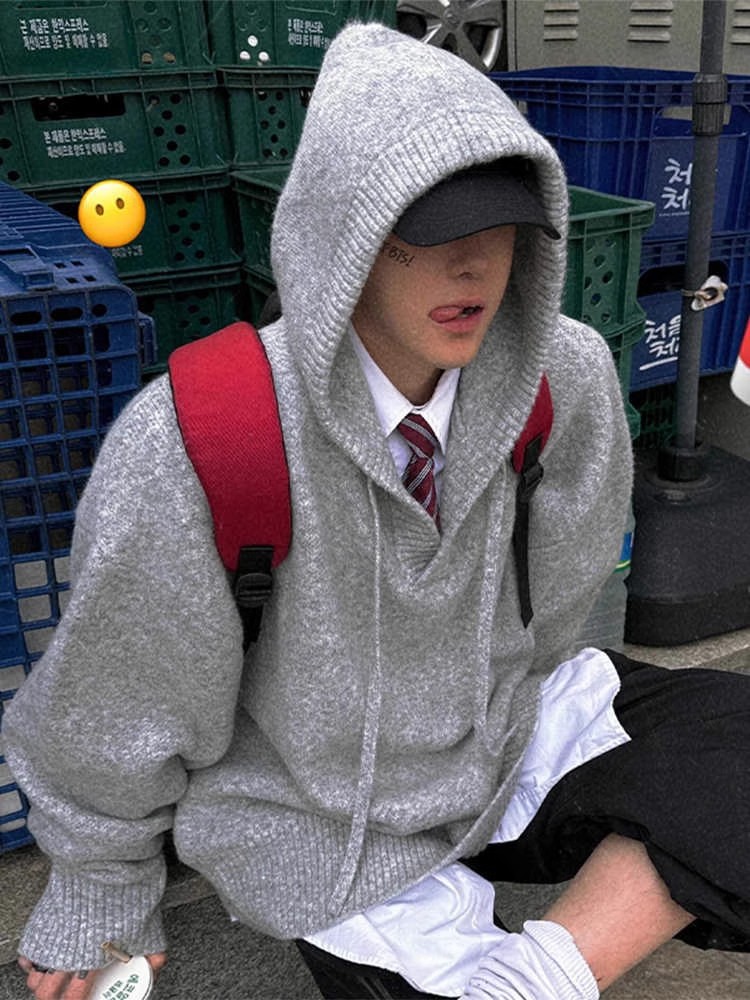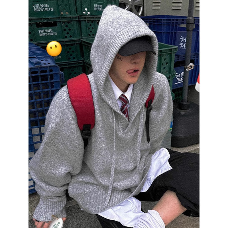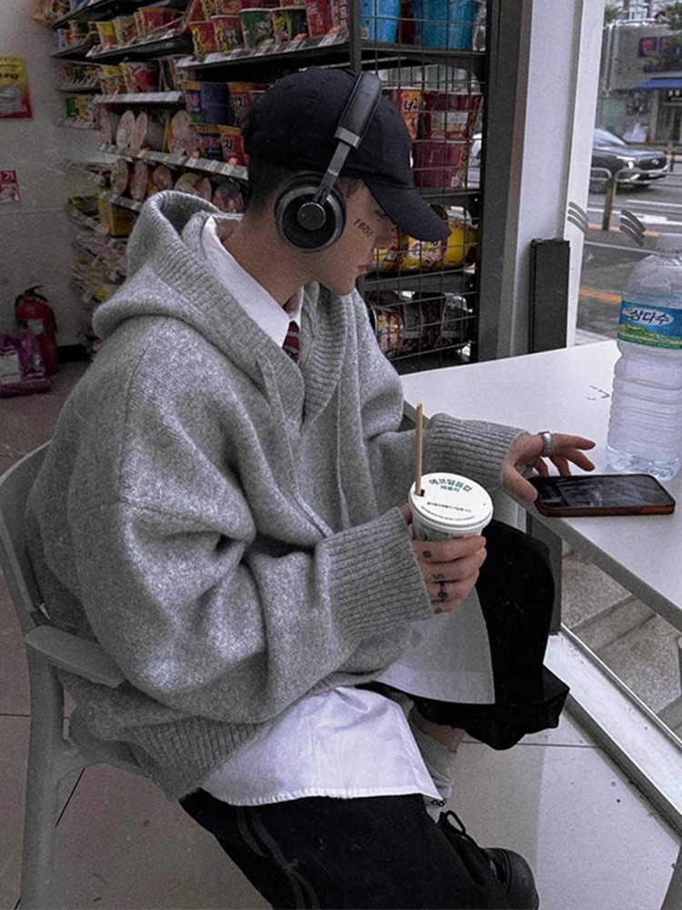 그레이 후드 니트 스웨터 남자 가을 겨울 한국 스타일 게으른 스타일 아메리칸 스타일 레트로 클렌핏 울 재킷스토어 가기