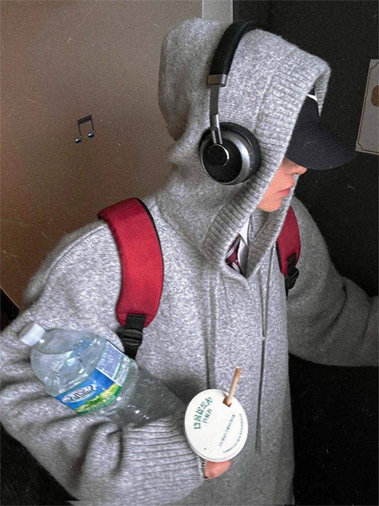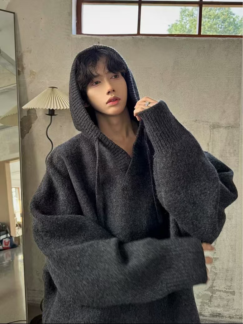 그레이 후드 니트 스웨터 남자 가을 겨울 한국 스타일 게으른 스타일 아메리칸 스타일 레트로 클렌핏 울 재킷