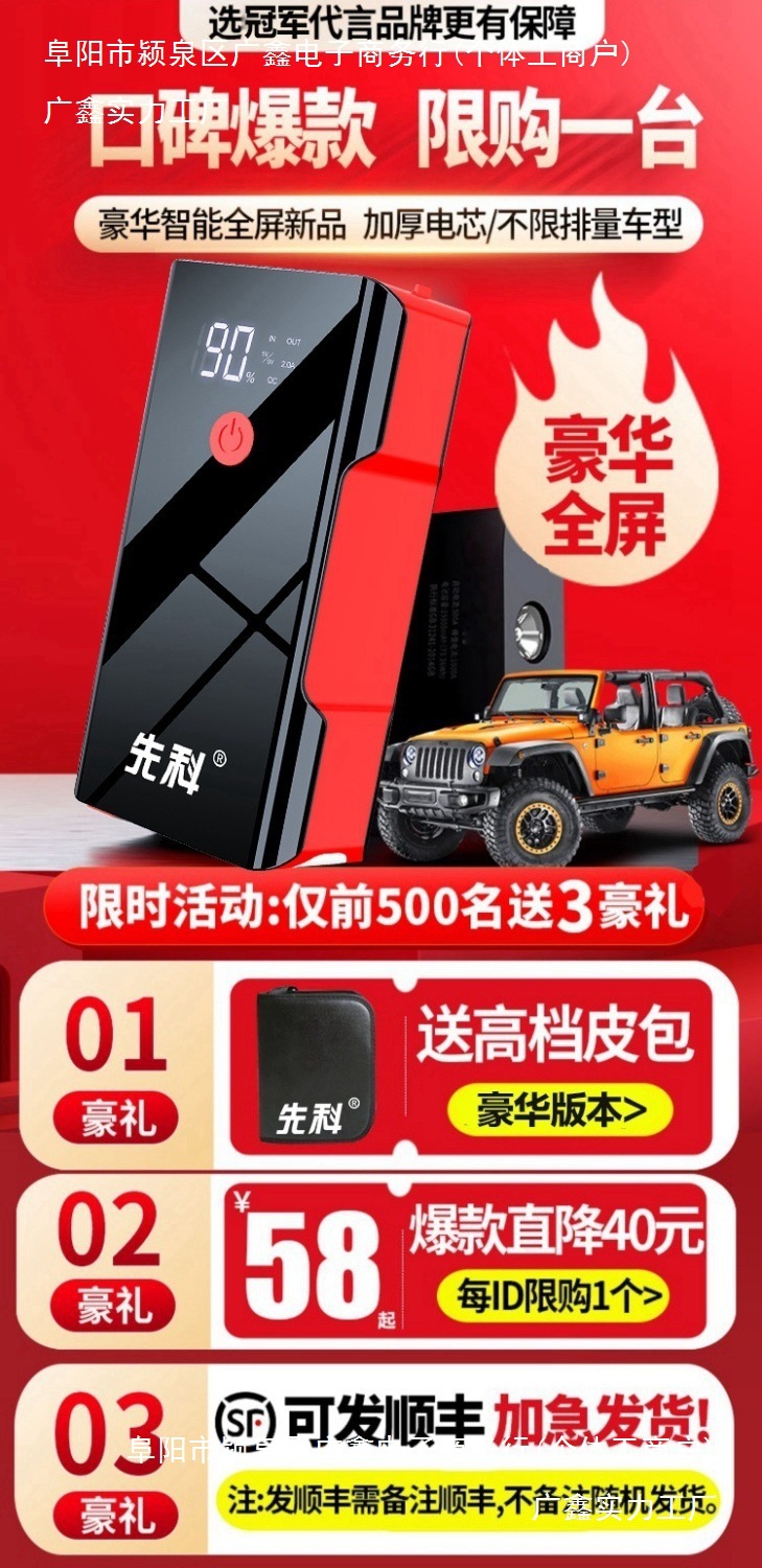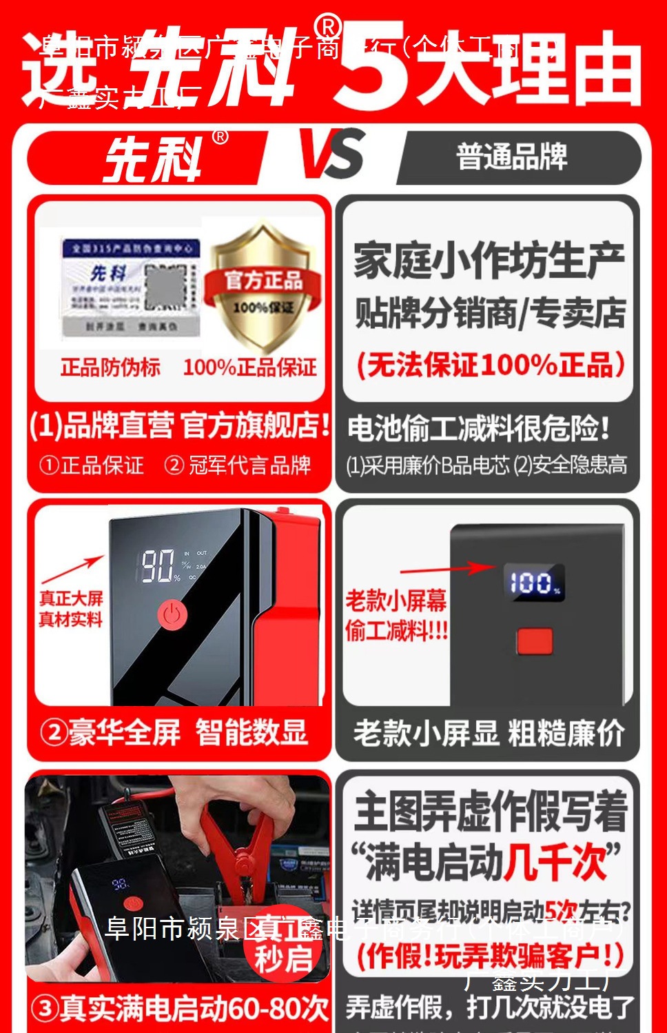 Xianke 자동차 비상 시작 전원 공급 장치 12v 자동차 충전 보물 소형 차량 점화 배터리 강력한 전원 Xiyang스토어 가기