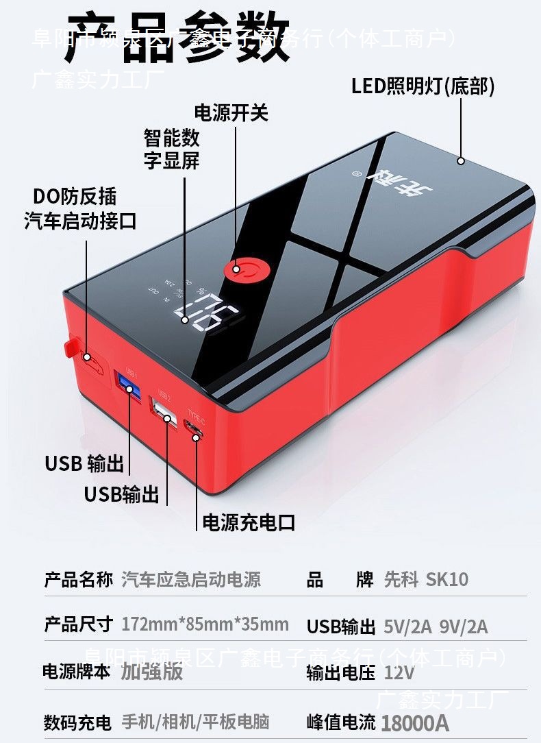 Xianke 자동차 비상 시작 전원 공급 장치 12v 자동차 충전 보물 소형 차량 점화 배터리 강력한 전원 Xiyang