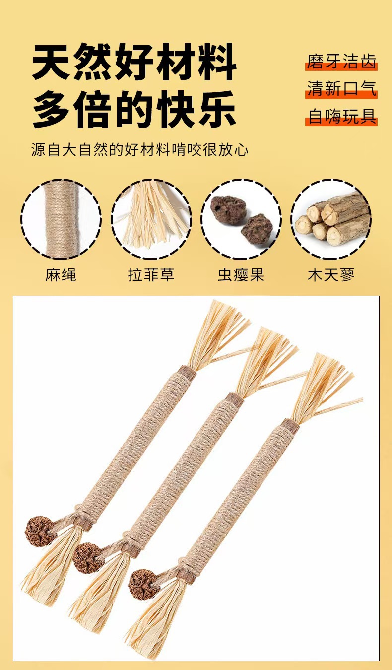 공장 도매 Polygonum lignos 연삭 스틱 고양이 스틱 자기 부조 답답한 물기 방지 담즙 과일 라피아 고양이 장난감