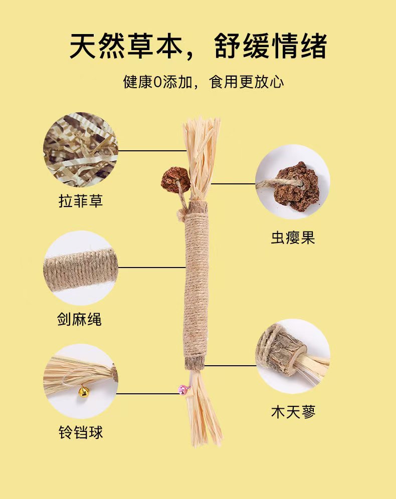 공장 도매 Polygonum lignos 연삭 스틱 고양이 스틱 자기 부조 답답한 물기 방지 담즙 과일 라피아 고양이 장난감스토어 가기
