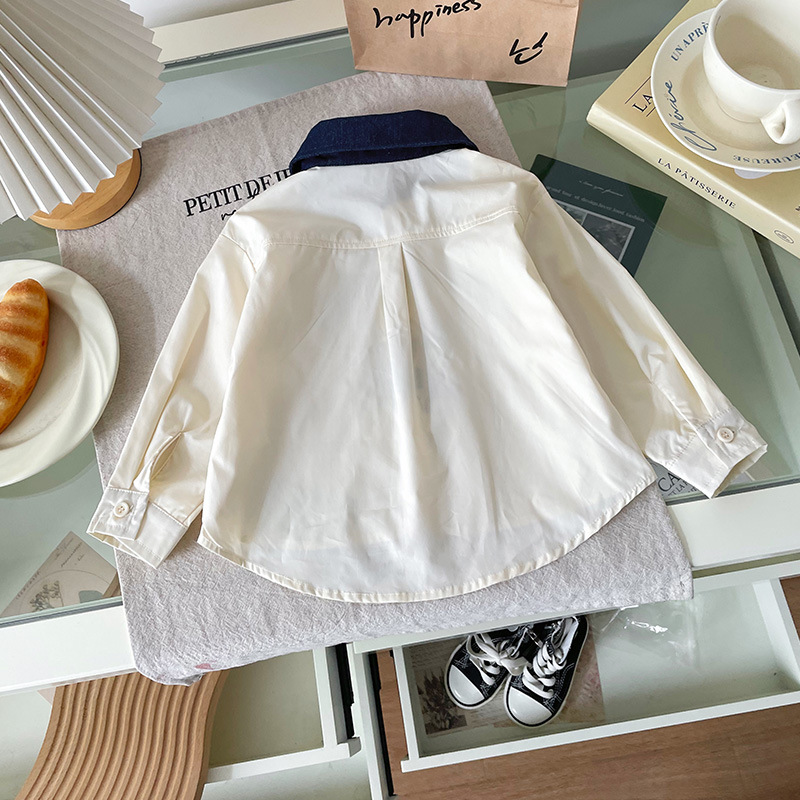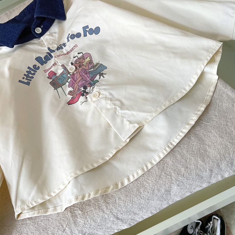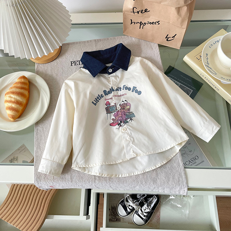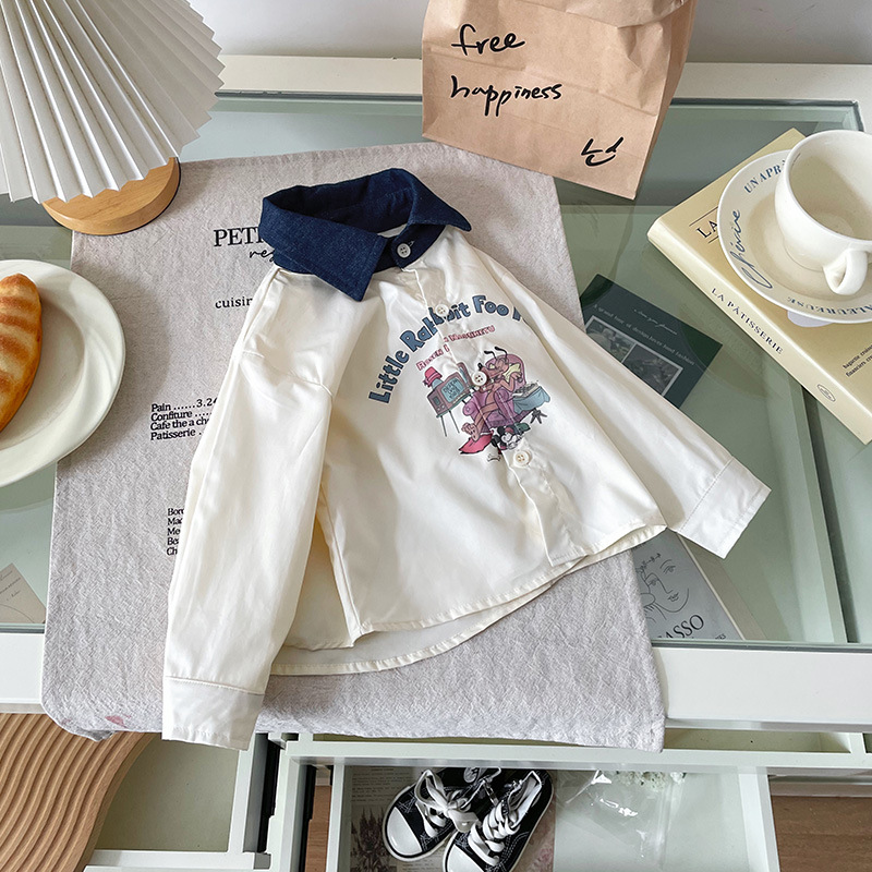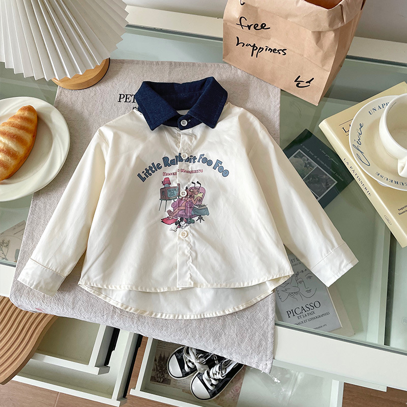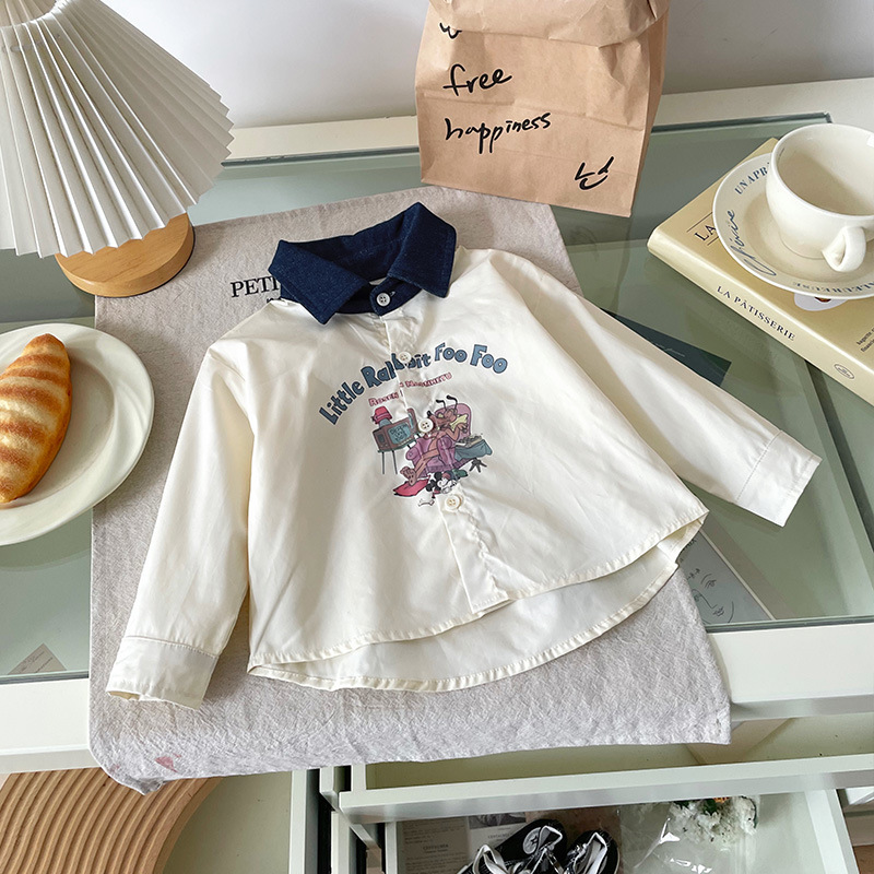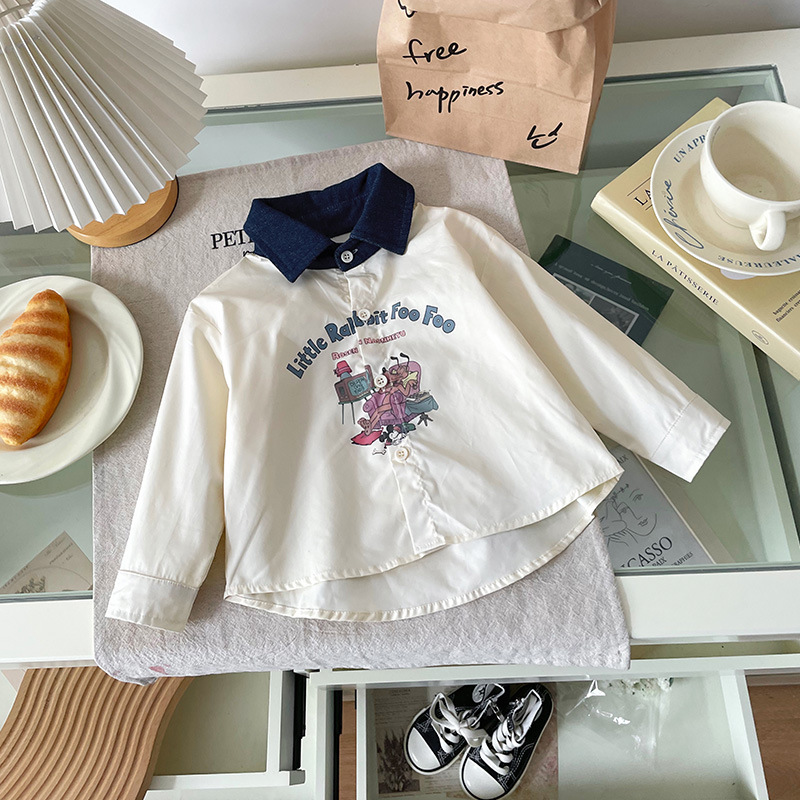 [재고] CY257682 어린이 2025 년 봄과 가을 대학 스타일 칼라 느슨한 만화 긴 소매 탑