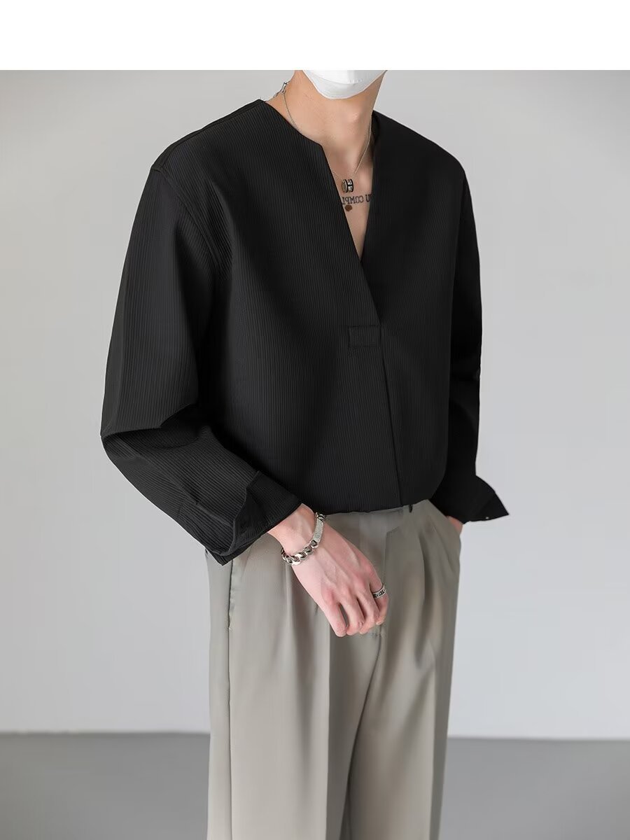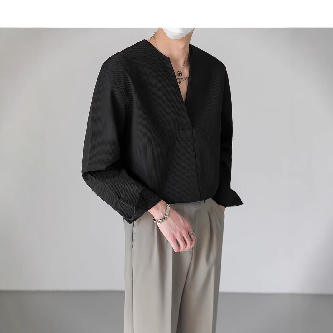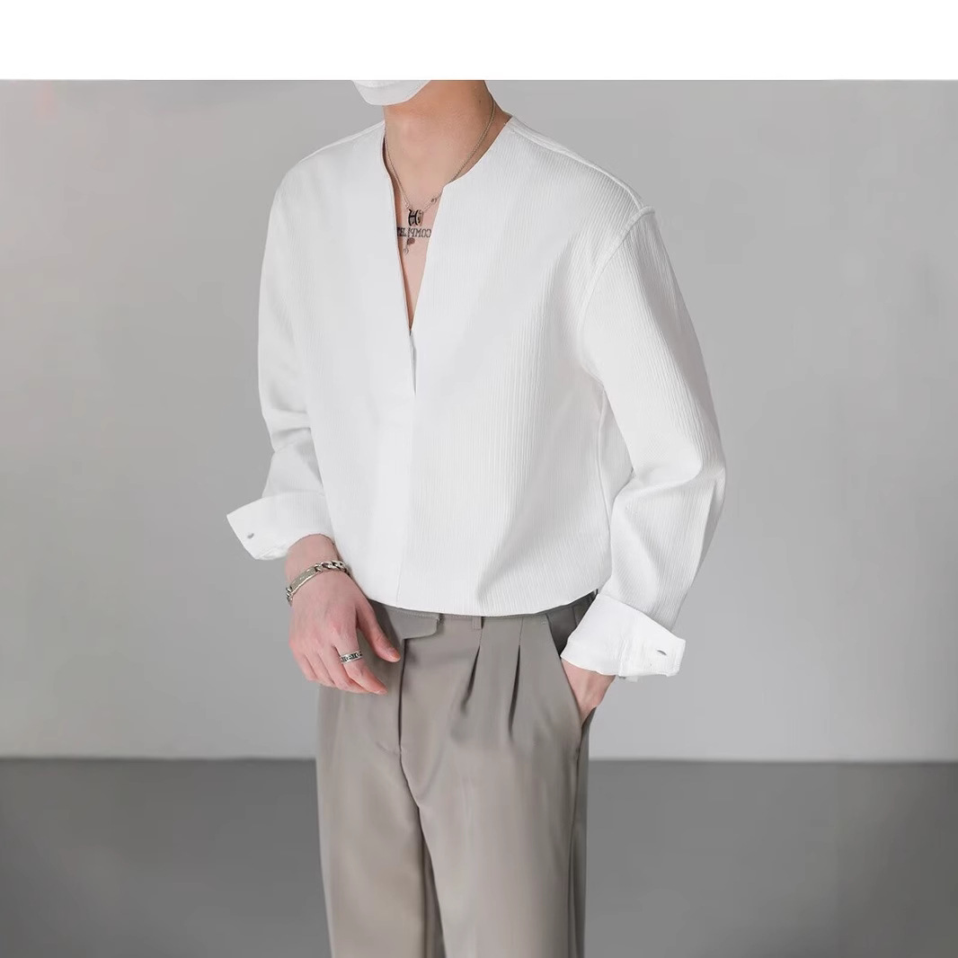 가벼운 럭셔리 하이 엔드 한국 느슨한 풀오버 긴팔 셔츠 남자의 가을 패션 브랜드 트렌디 한 칼라리스 핫 프리 셔츠