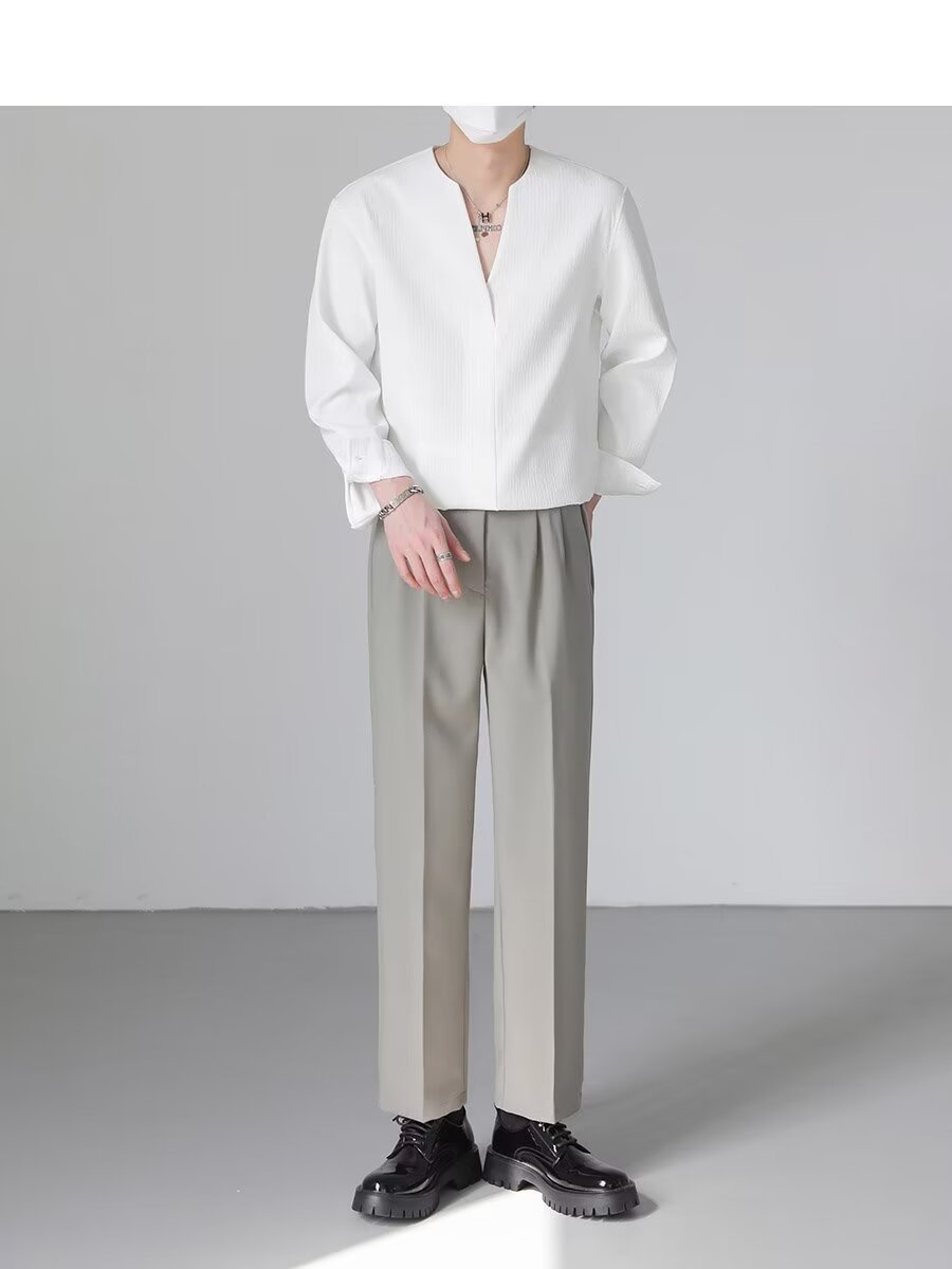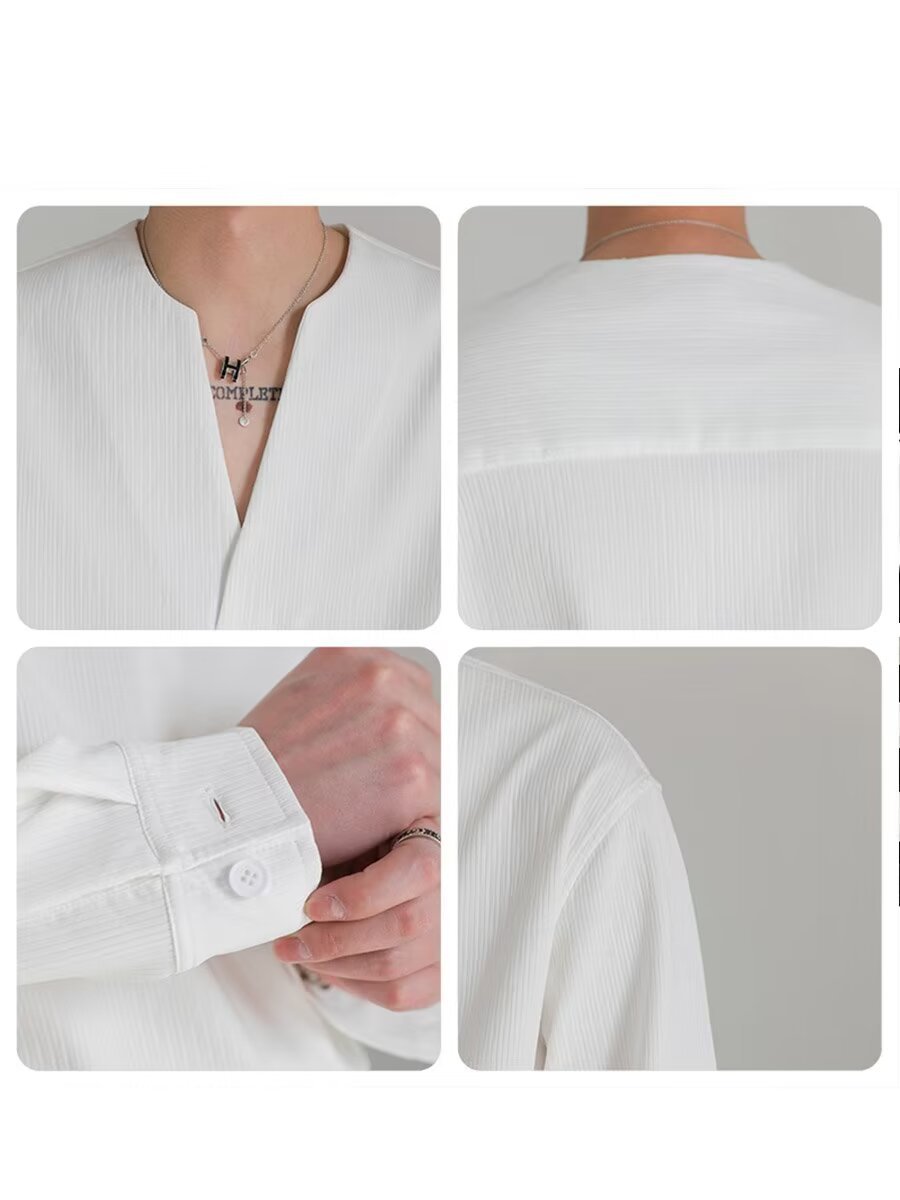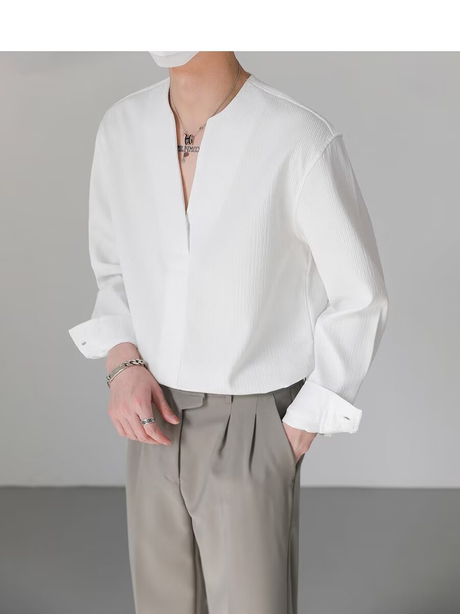 가벼운 럭셔리 하이 엔드 한국 느슨한 풀오버 긴팔 셔츠 남자의 가을 패션 브랜드 트렌디 한 칼라리스 핫 프리 셔츠