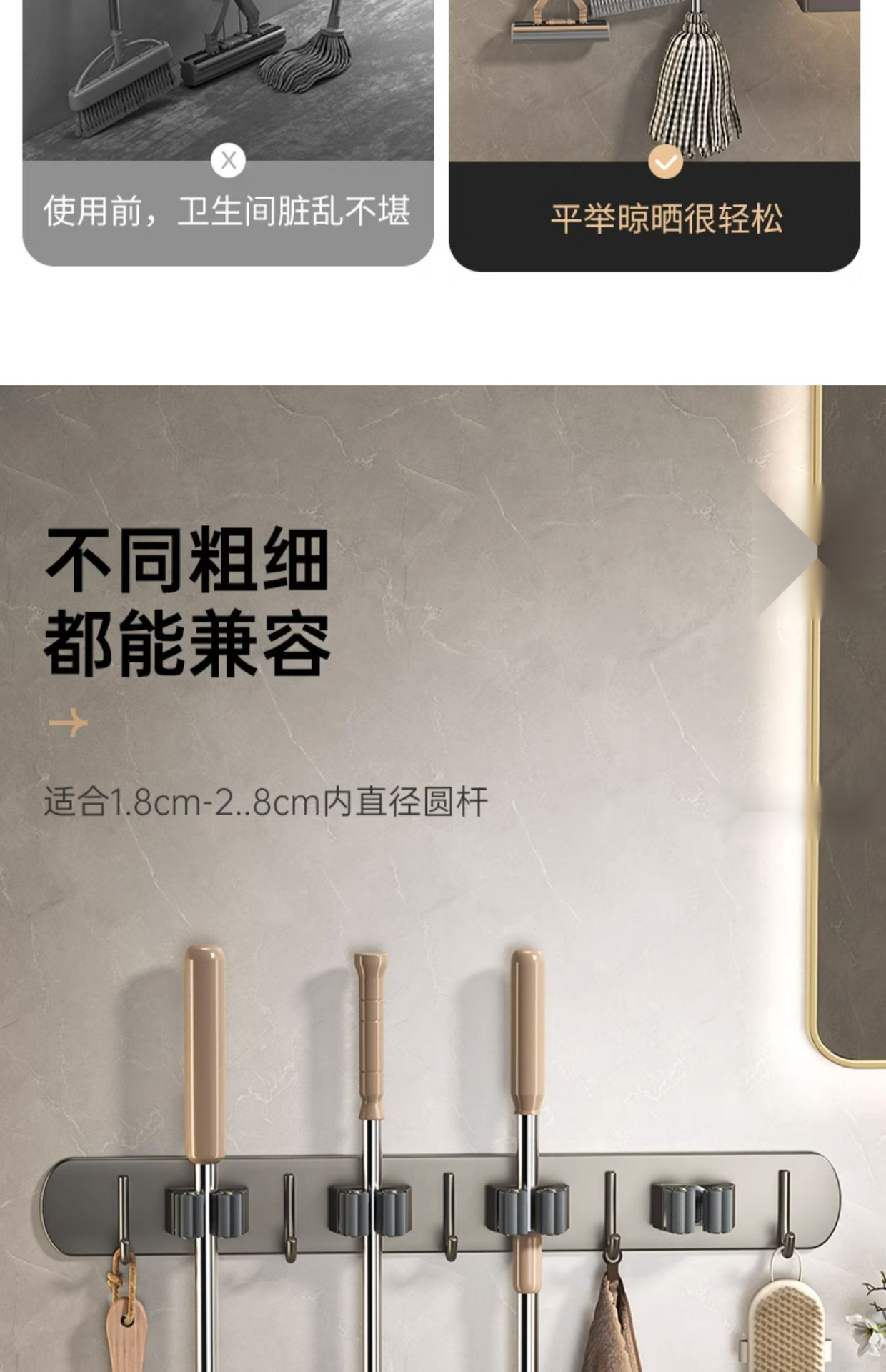 걸레 벽 걸이 후크 발코니 욕실 화장실 버클 고정 빗자루 보관 걸이스토어 가기