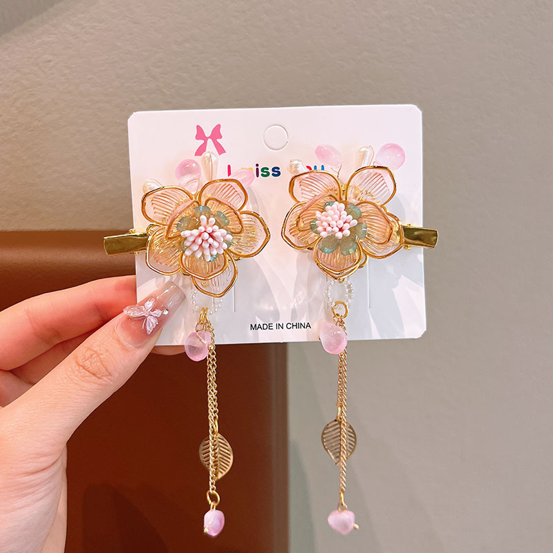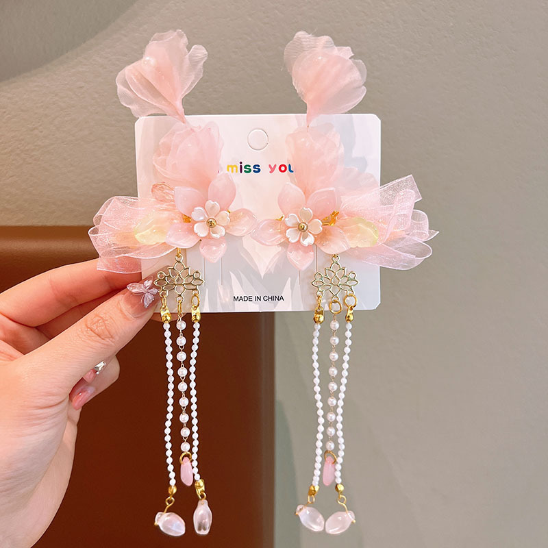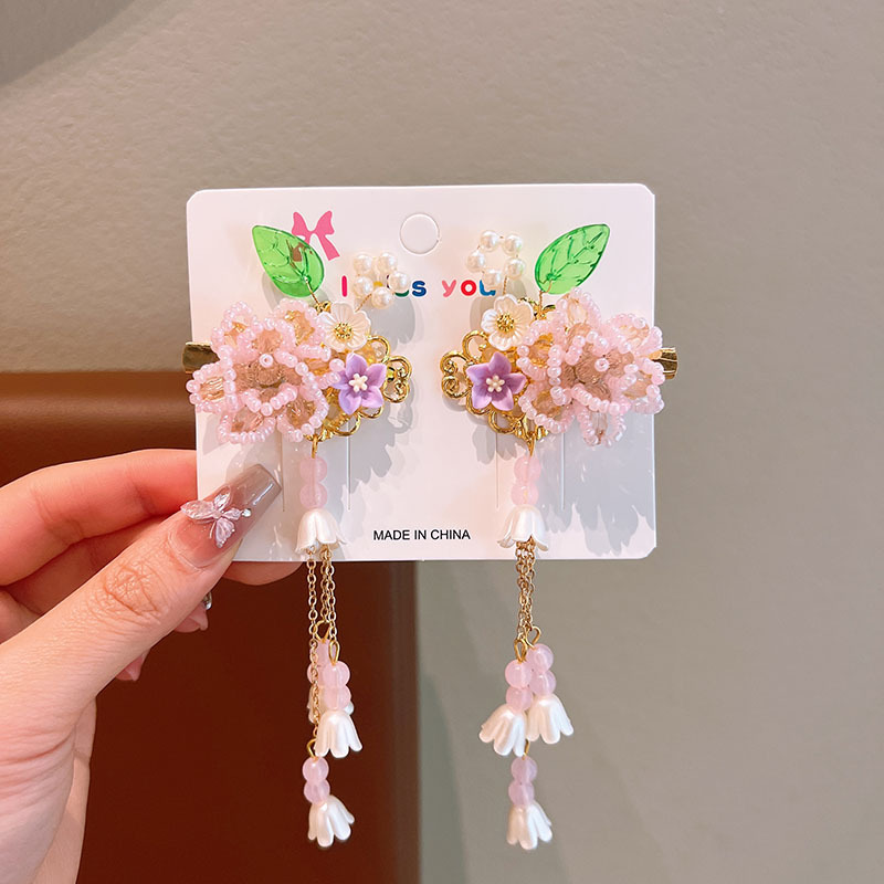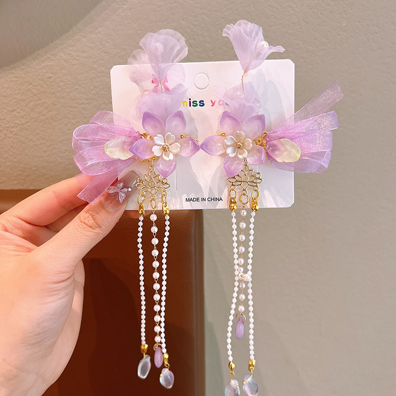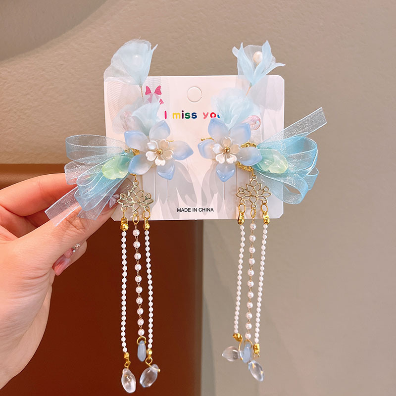 어린이 골동품 헤어핀 한푸 헤드웨어 어린이 어린 소녀의 활 헤어핀 헤어 액세서리 고대 꽃 리본 클립