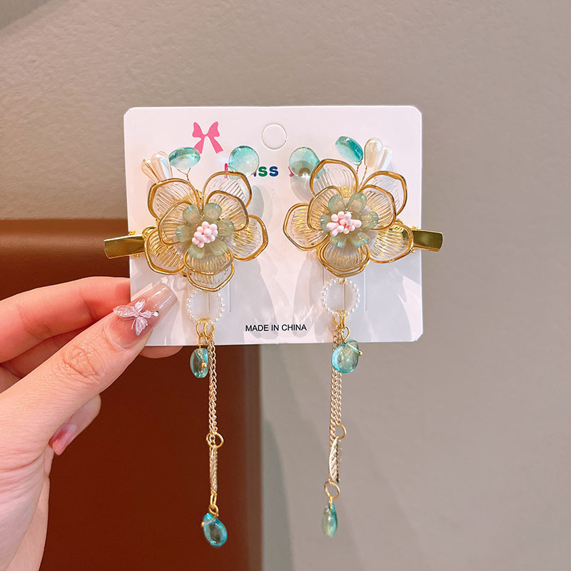 어린이 골동품 헤어핀 한푸 헤드웨어 어린이 어린 소녀의 활 헤어핀 헤어 액세서리 고대 꽃 리본 클립스토어 가기