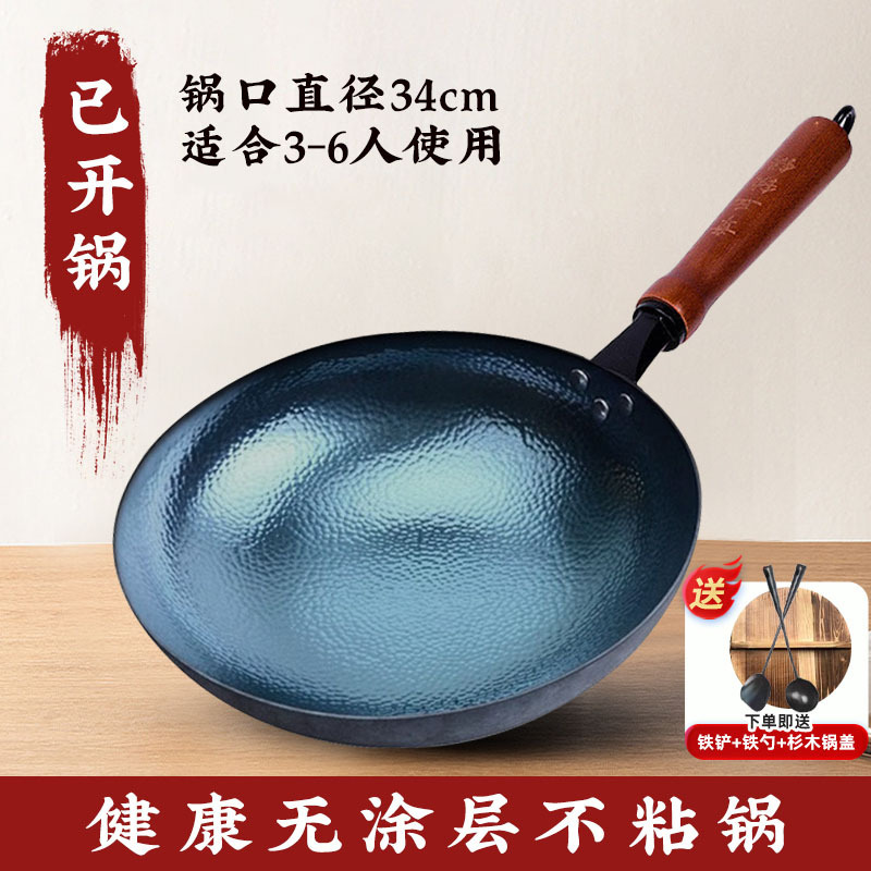 손으로 위조 된 Wok Non-stick Wok 구식 철 냄비 정품 Zhangqiu Iron Pot Home Wok None스토어 가기