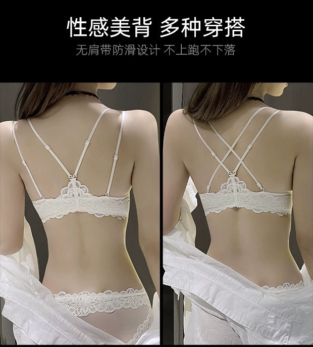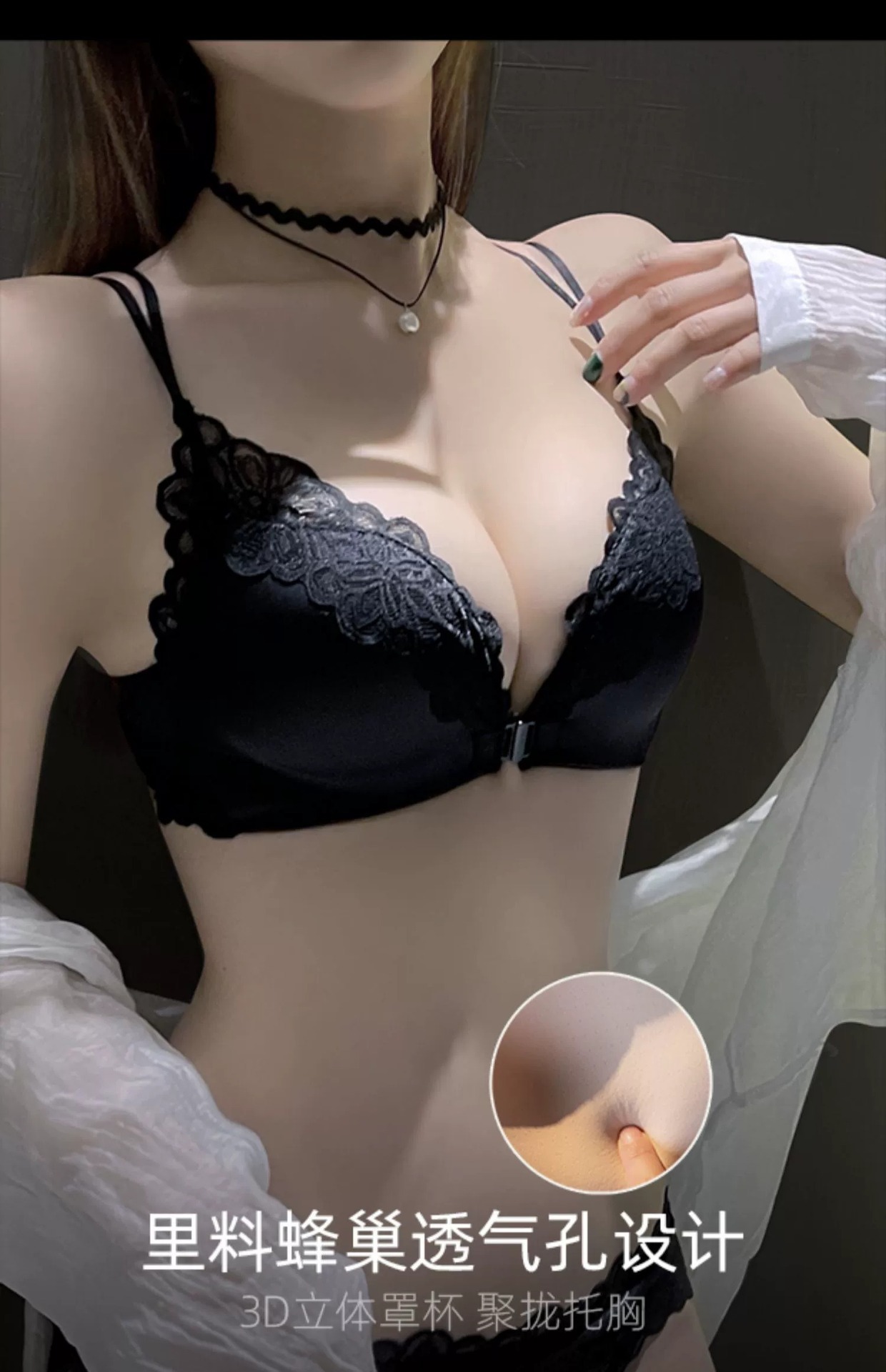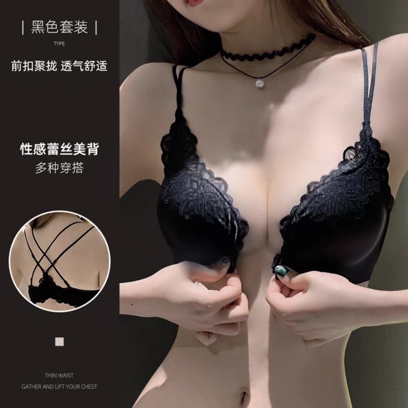 아름 다운 백 속옷 여성용 여름 스틸 링 섹시 프론트 버클 브라 화이트 레이스 프론트 버클 브릴 브러없이 두꺼운 작은 가슴 푸시 업스토어 가기