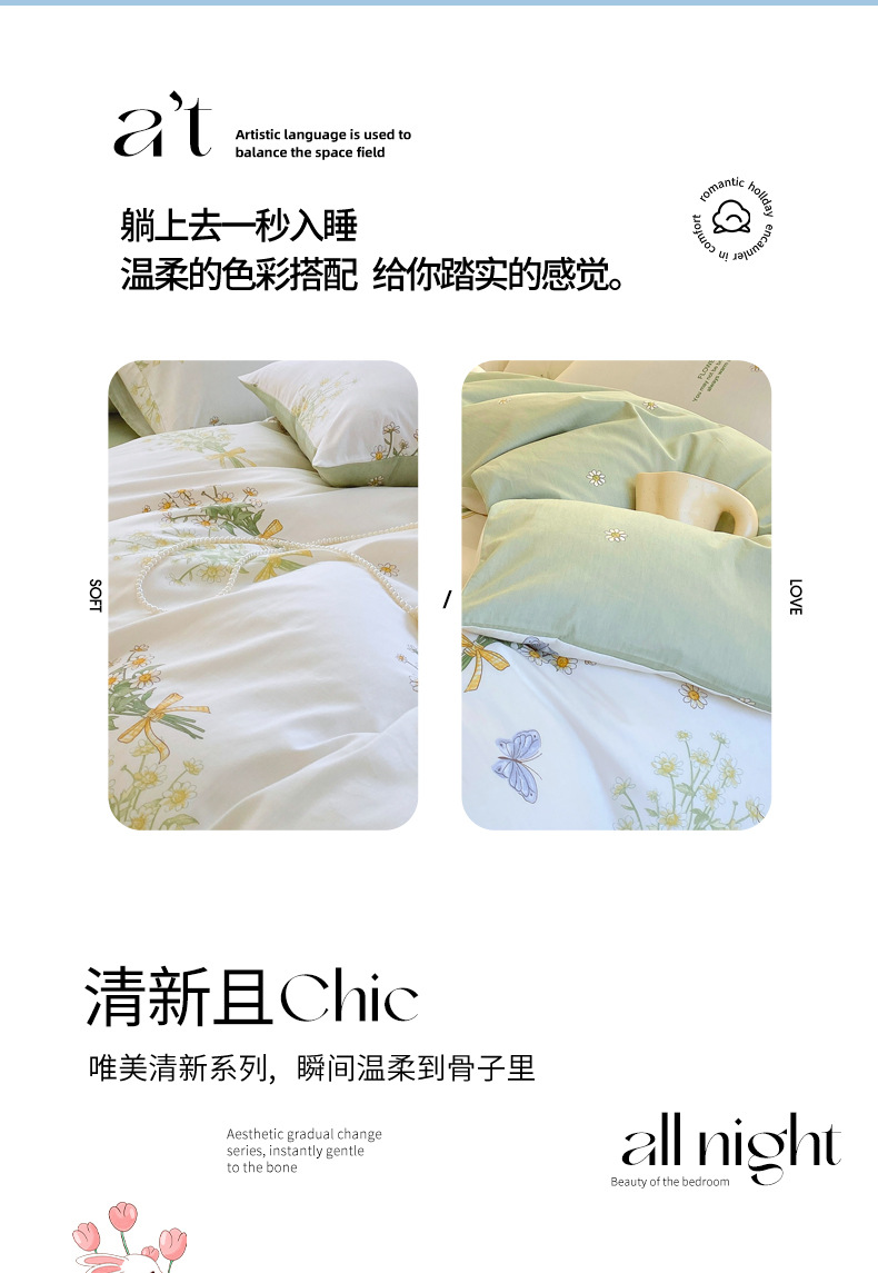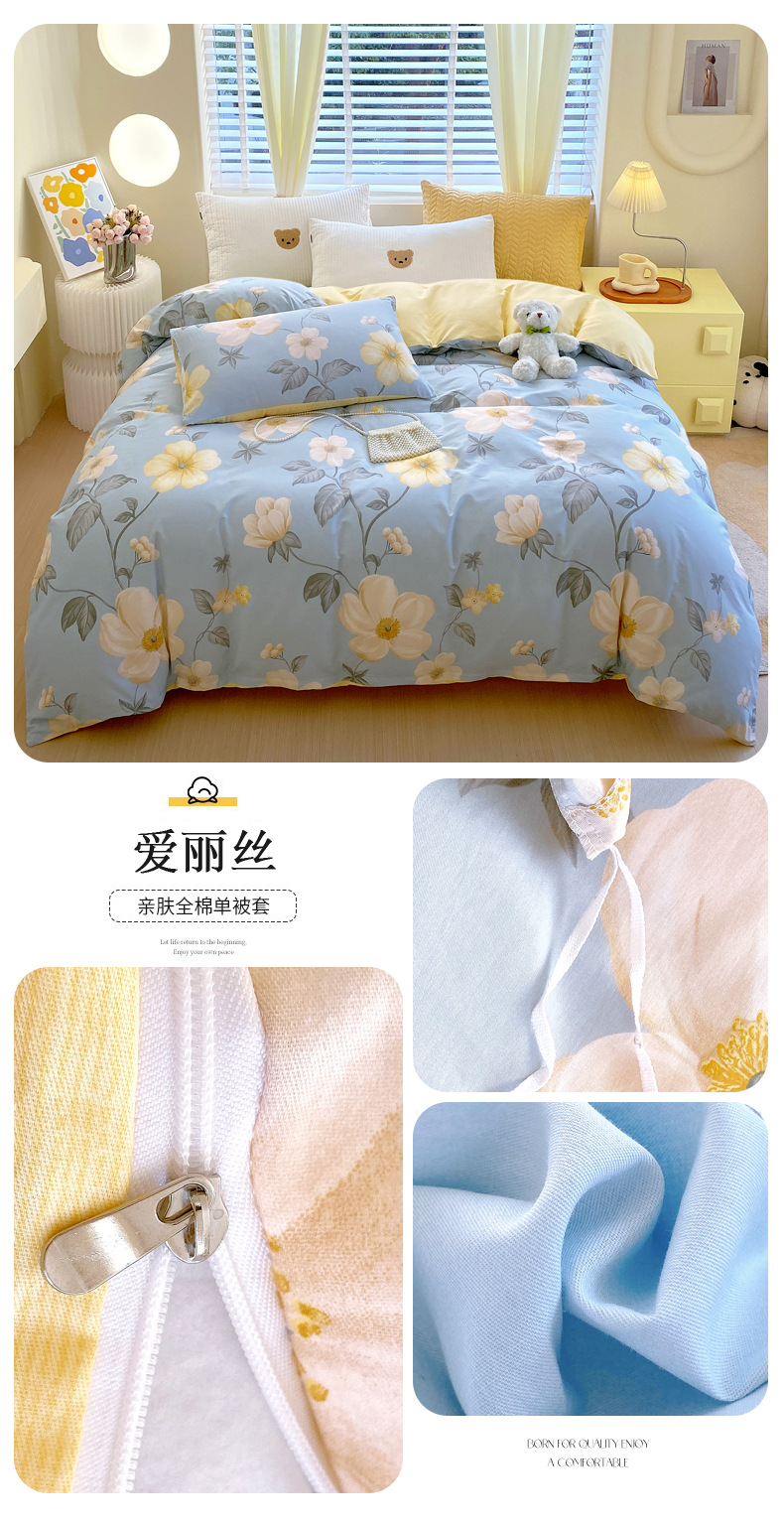 2025 코튼 제트 프린트 코튼 침대 시트와 이불 커버 작은 신선한 꽃 홈 이불 커버스토어 가기