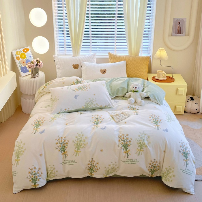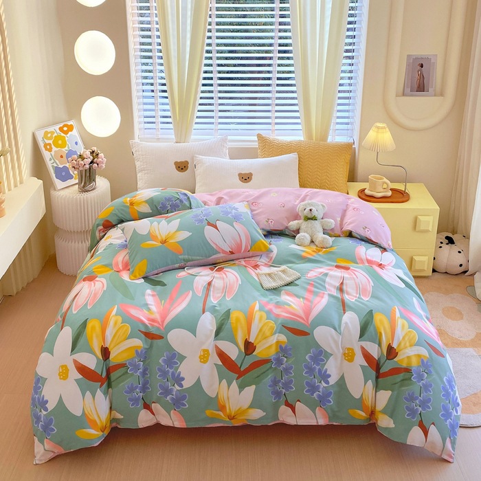 2025 코튼 제트 프린트 코튼 침대 시트와 이불 커버 작은 신선한 꽃 홈 이불 커버