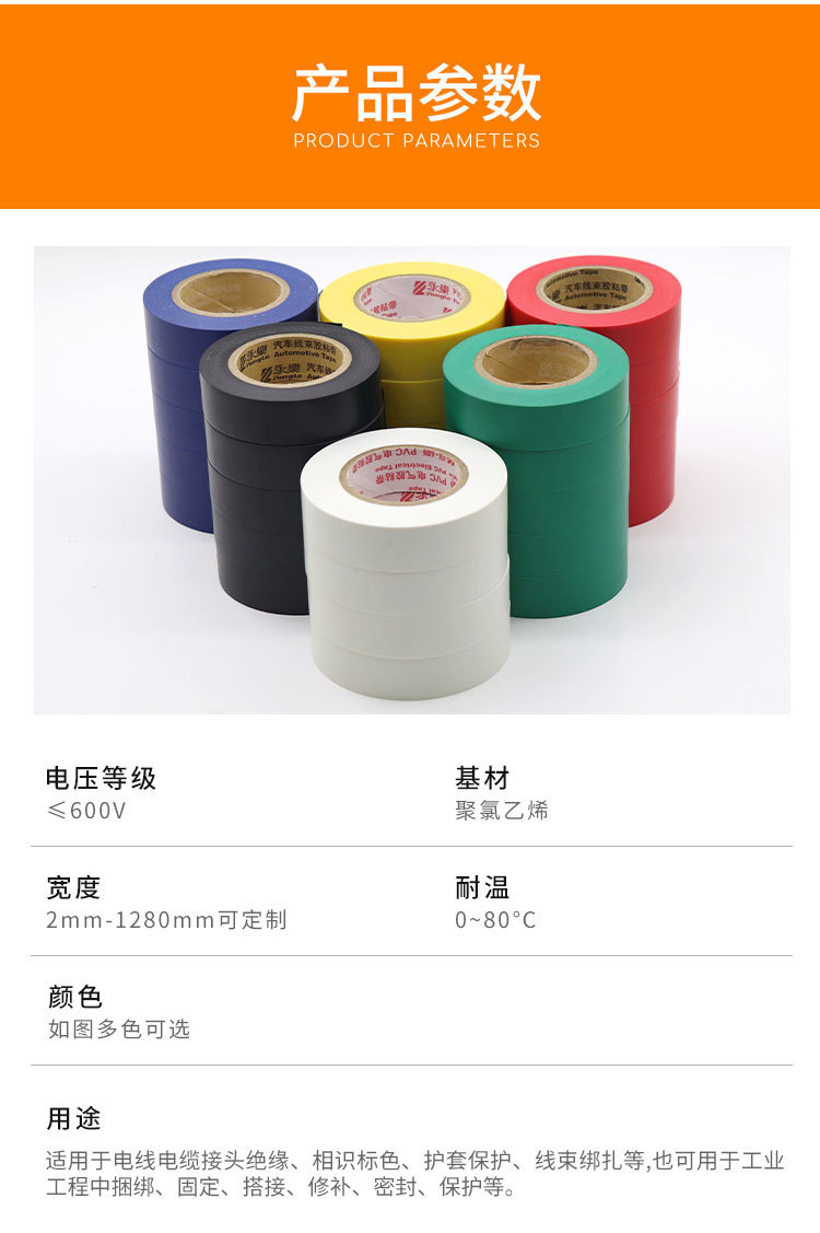 전기 테이프, 고온 저항, 난연, 내화, 높은 점도, 비 잔류 접착제, 정전기 방지, 자동차 배선 하네스, 와이어 절연 테이프