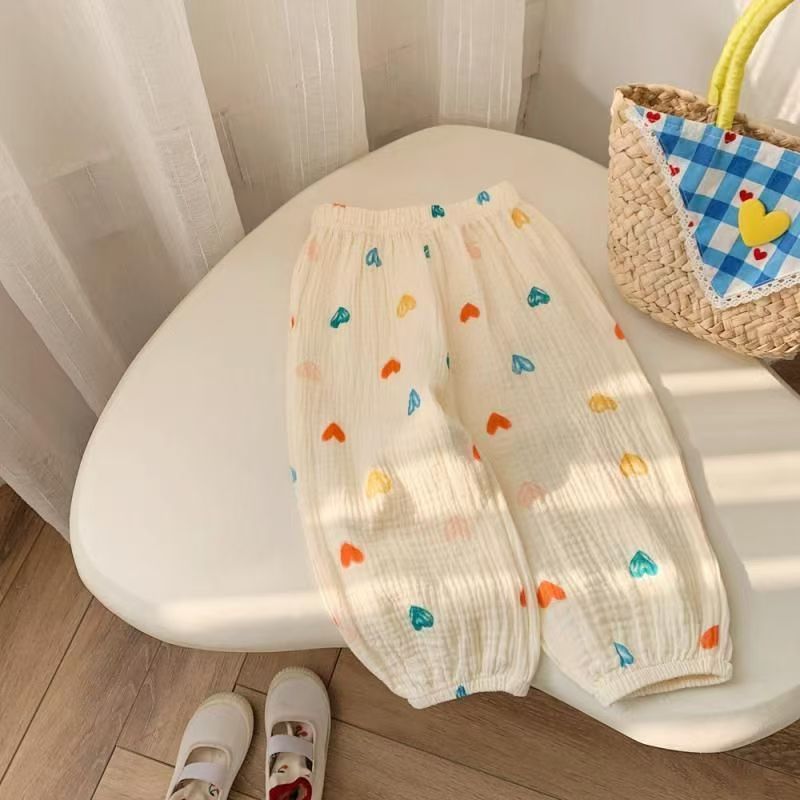 2025 새로운 아기 여름 양면 원사 안티 모기 바지 소년 소녀 어린이 바지 아이들의 귀여운 패션