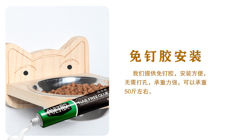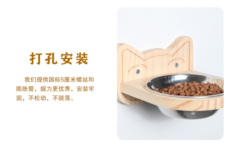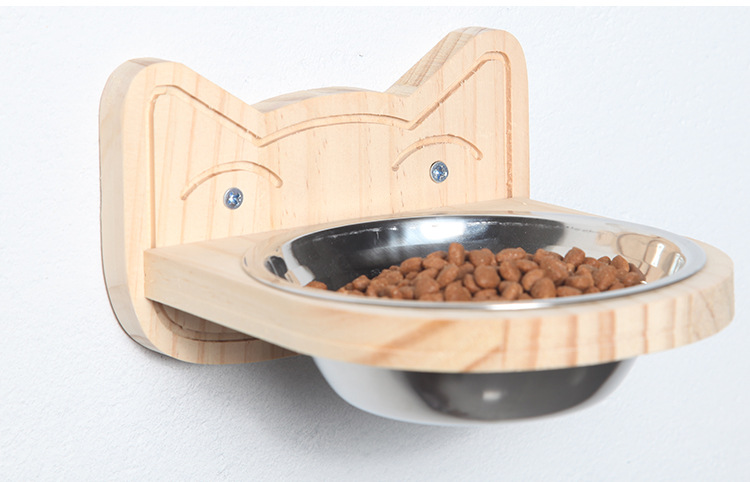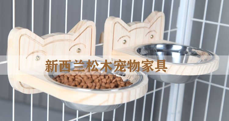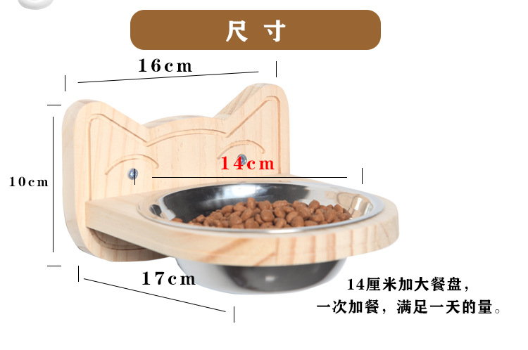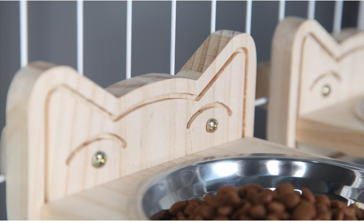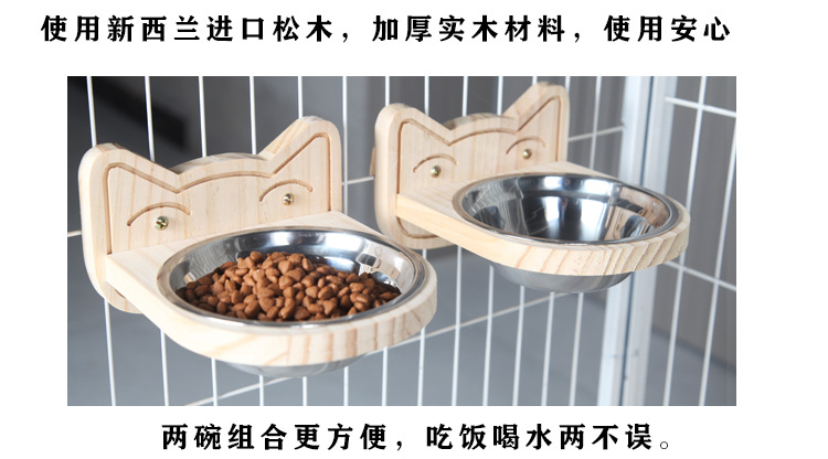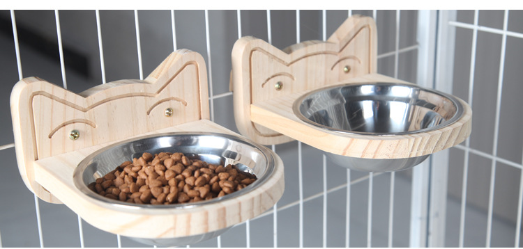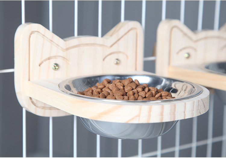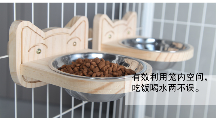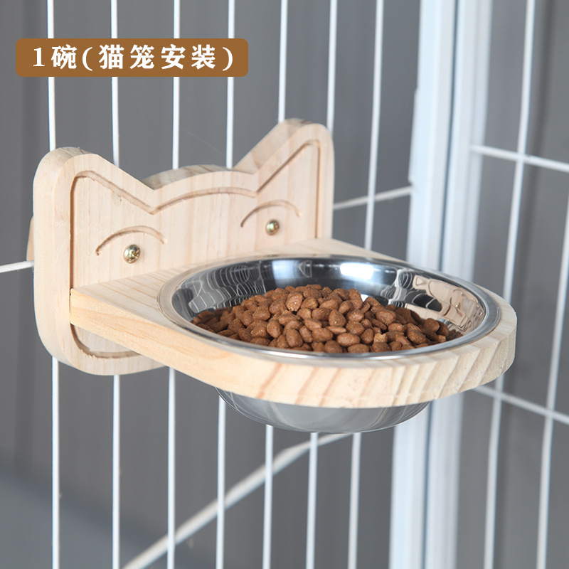 고양이 그릇 단단한 나무 스테인리스 고양이 분지 고양이 케이지가 뒤집히는 고양이와 개 그릇 마시는 분지 자궁 경부 척추 보호 용품을 매달아