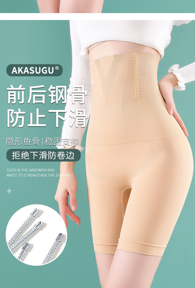 [더블 레이어 4 물고기 뼈] 높은 허리 편각 복부 엉덩이 리프팅 바지 허리 얇은 엉덩이 팬티 여성의 작은 배 슬리밍스토어 가기