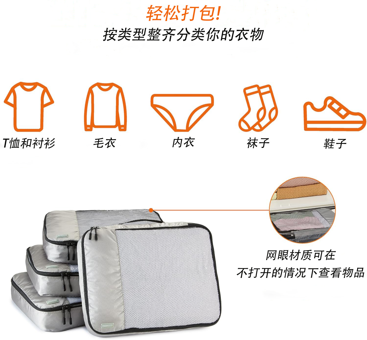 국경 간 아마존 여행 보관 가방 지퍼 메쉬 마름모 옥스포드 천 4 종 세트
