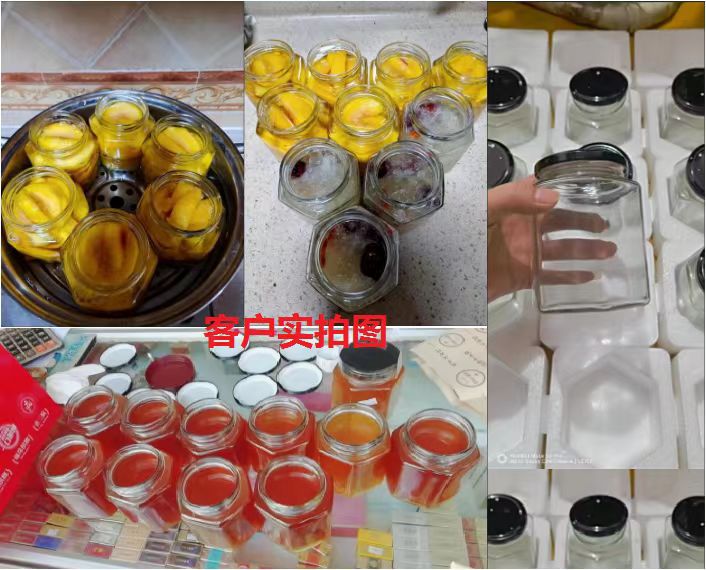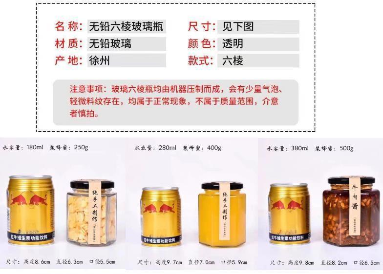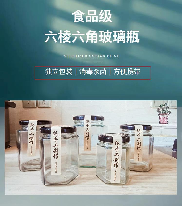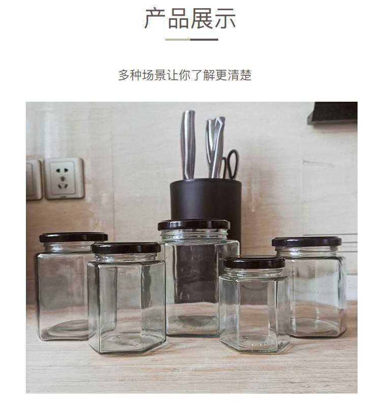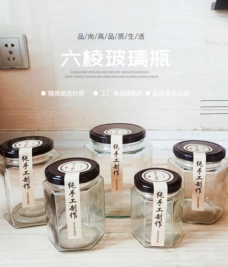 6 면 유리 병 밀폐 된 항아리 식품 등급 레몬 페이스트 뚜껑이 1 킬로그램의 허니 칠리 소스 잼 육각형 병 비어 있음스토어 가기