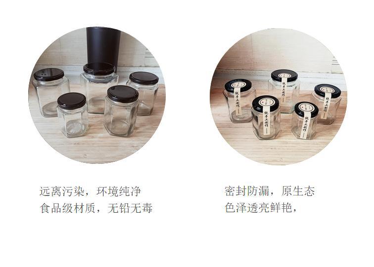 6 면 유리 병 밀폐 된 항아리 식품 등급 레몬 페이스트 뚜껑이 1 킬로그램의 허니 칠리 소스 잼 육각형 병 비어 있음