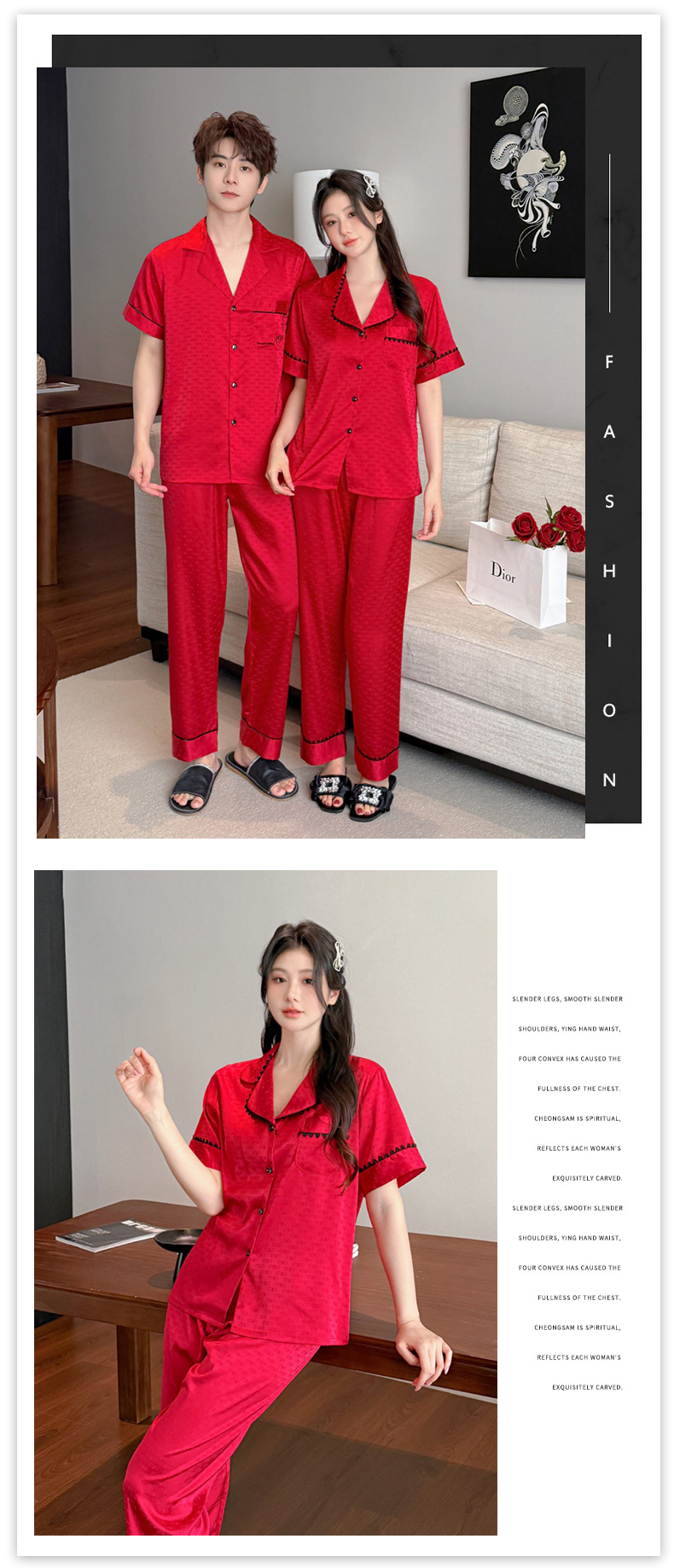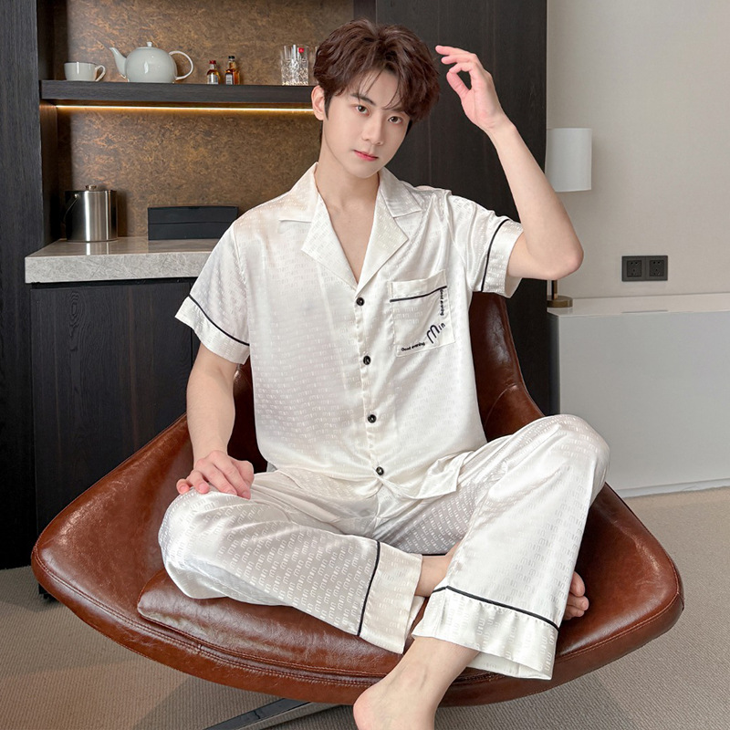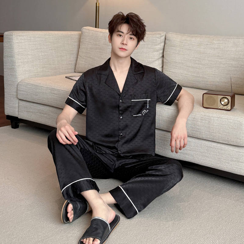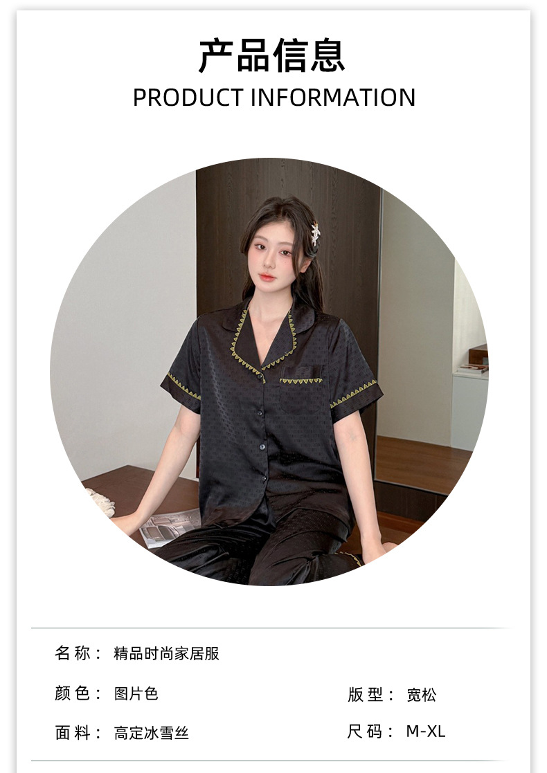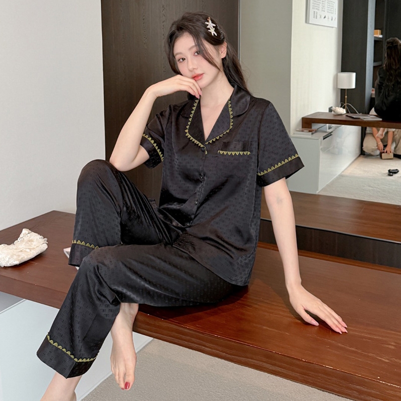 소스 공장 제품 2025 연인 아이스 실크 잠옷 여성 봄과 가을 짧은 소매 플러스 사이즈 옷깃 카디건 세트 그물 레드 라이브스토어 가기