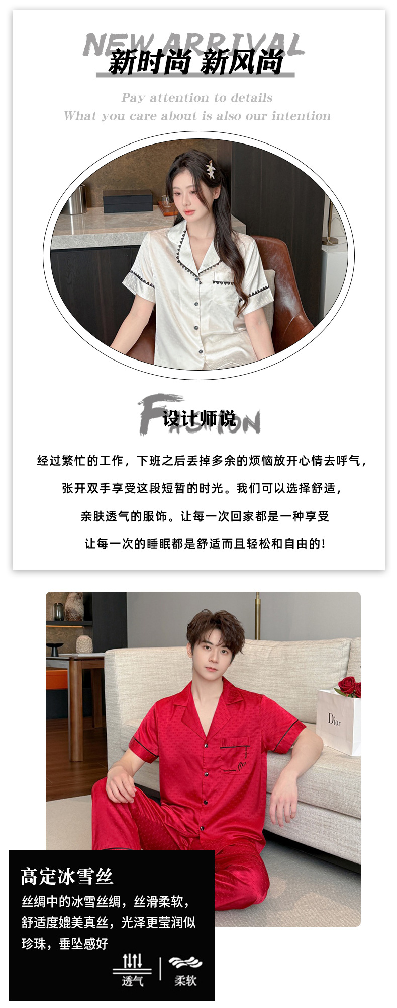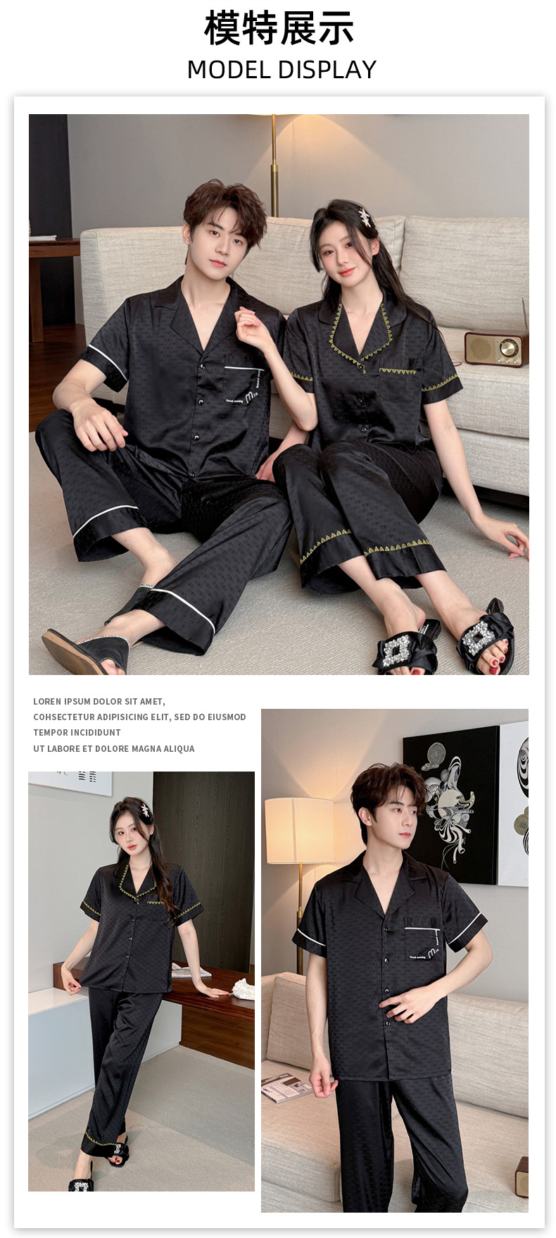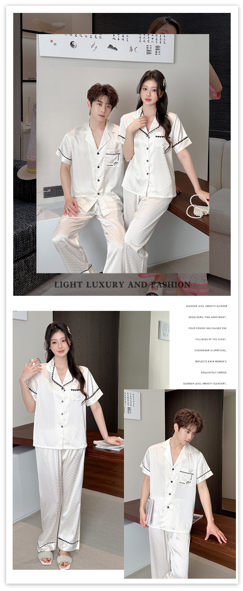 소스 공장 제품 2025 연인 아이스 실크 잠옷 여성 봄과 가을 짧은 소매 플러스 사이즈 옷깃 카디건 세트 그물 레드 라이브스토어 가기