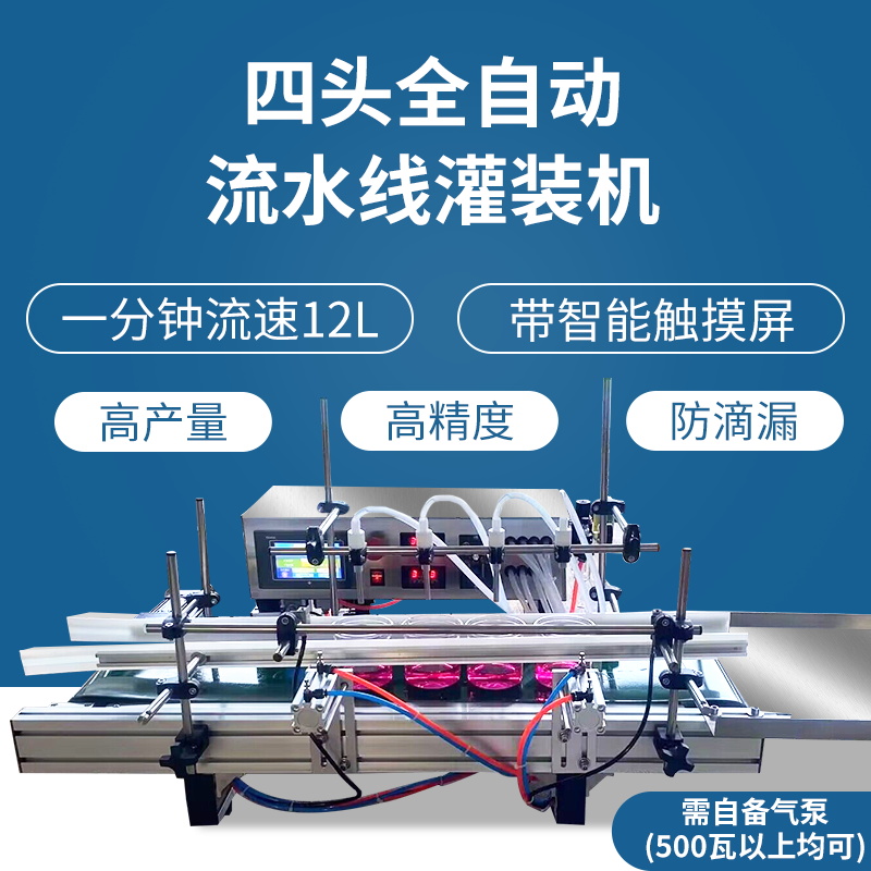 • 4헤드 액체 충전 기계(자동 조립 라인 + 지능형 터치 스크린) 분당 12L