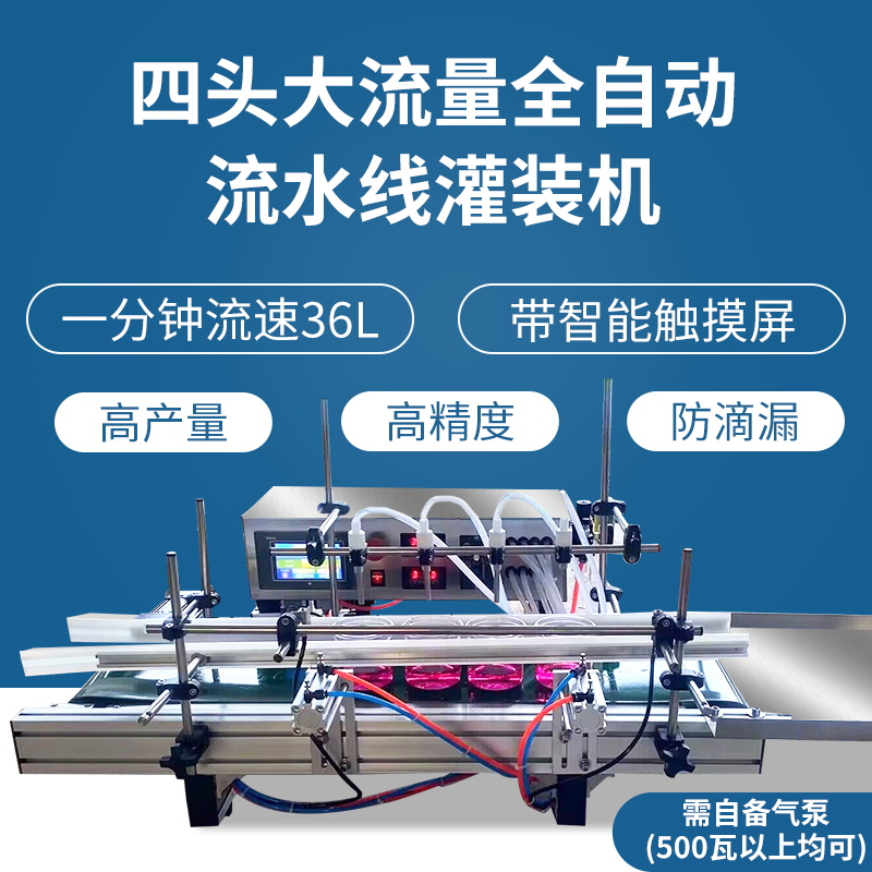 • 4헤드 대용량 액체 충전 기계 자동 조립 라인 + 지능형 터치 스크린 분당 36L