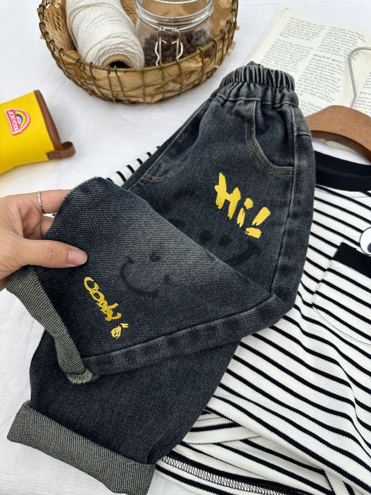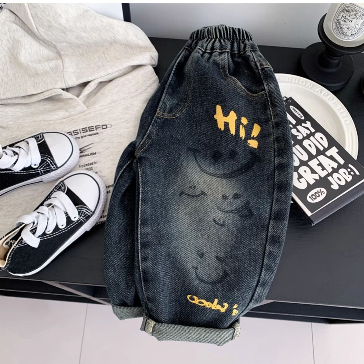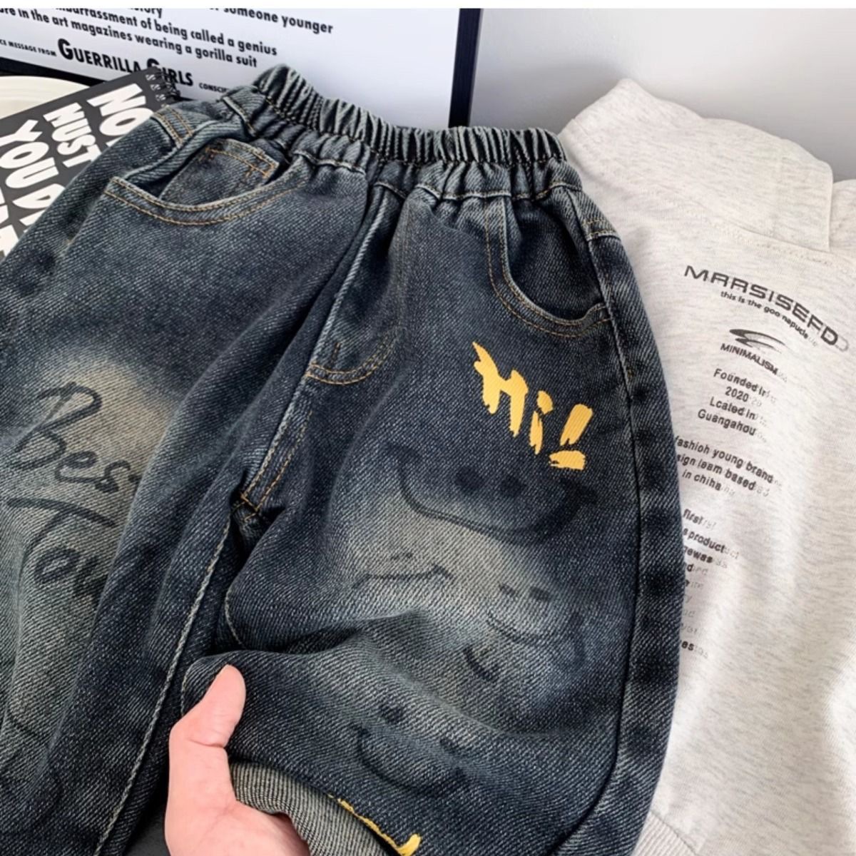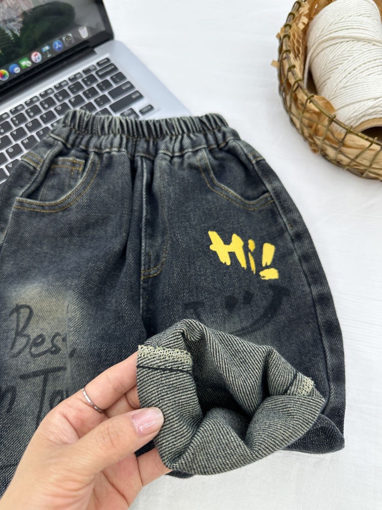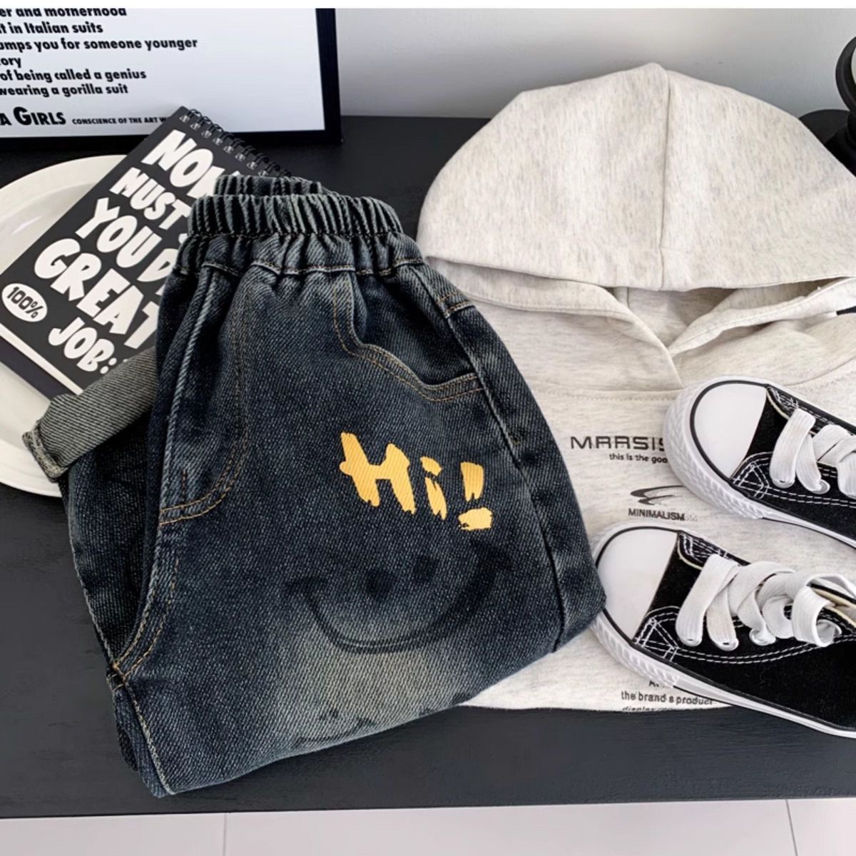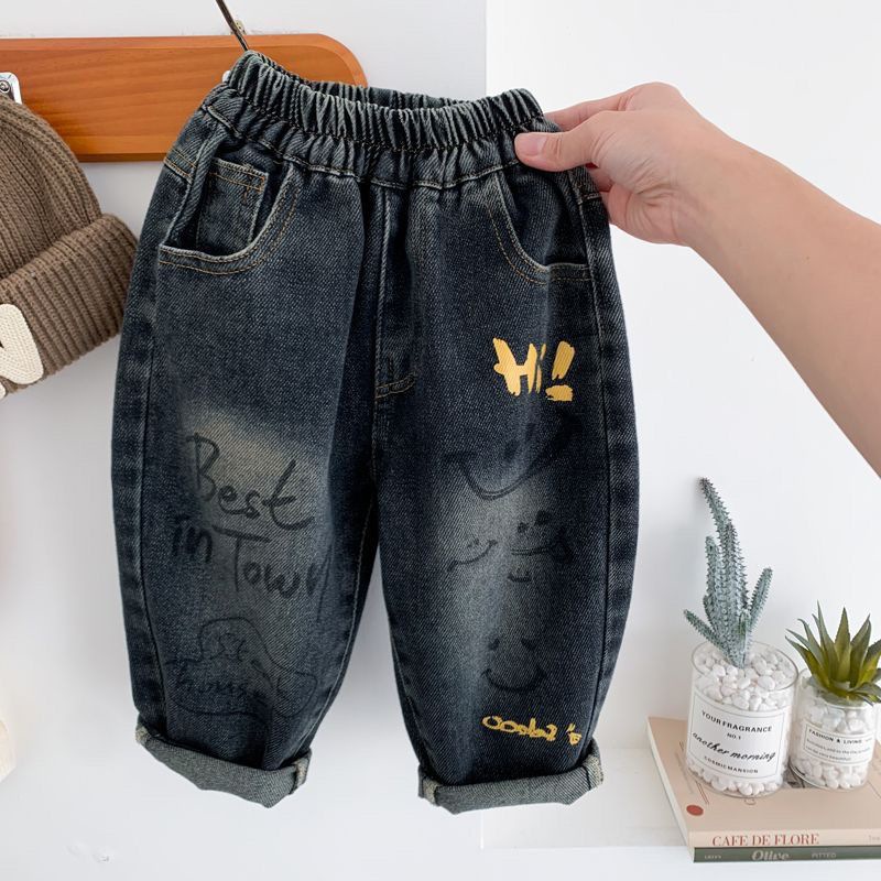 봄과 가을 남녀 아동복 청바지 아기의 서양식 어린이 성격 조수 점진적 컬러 편지 만화 할란 바지