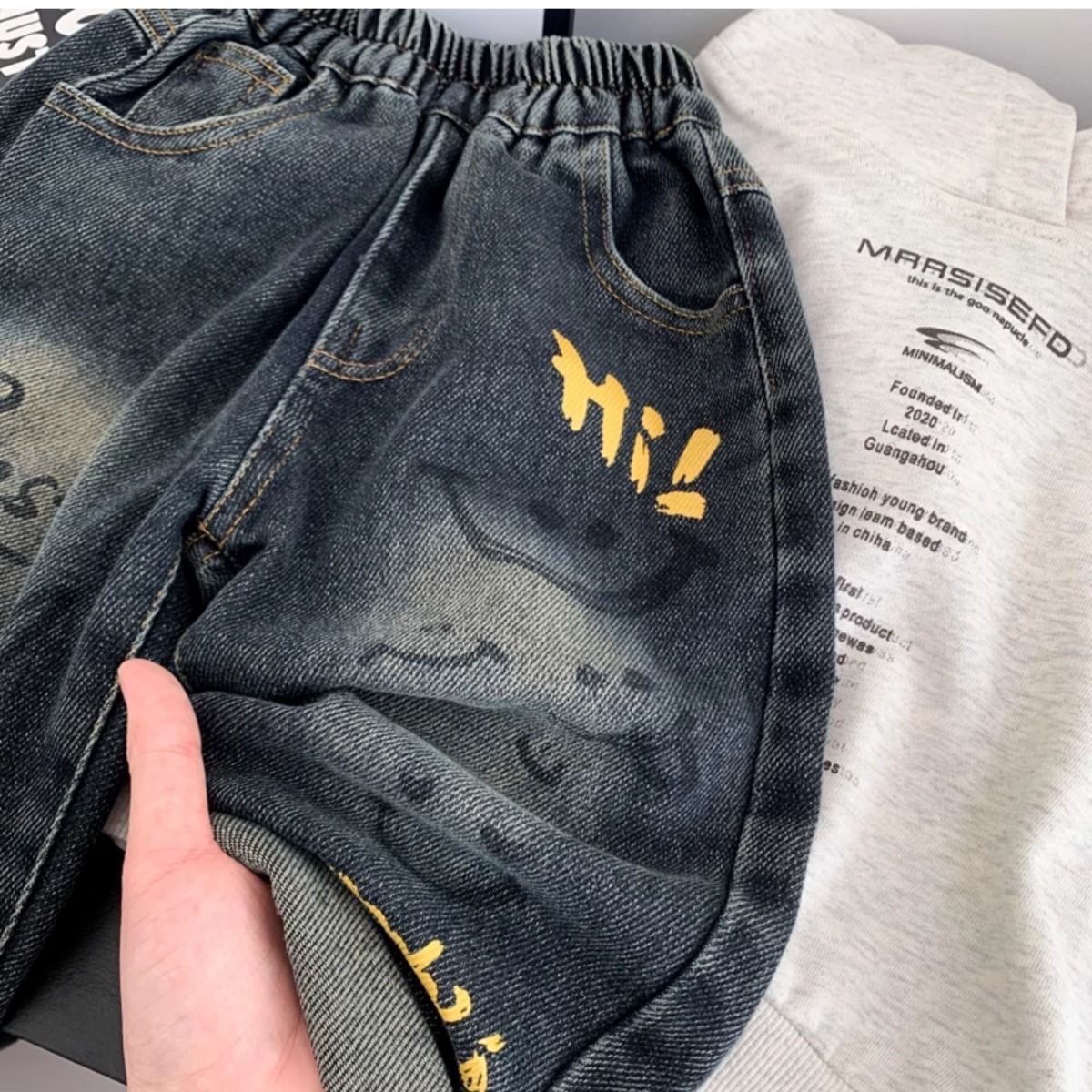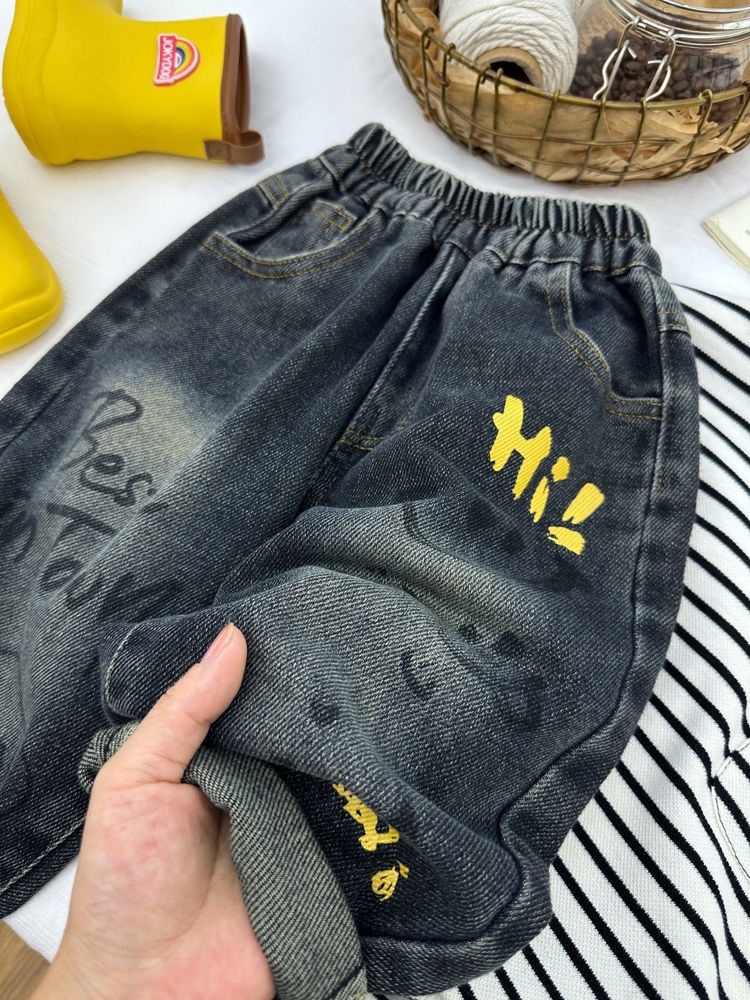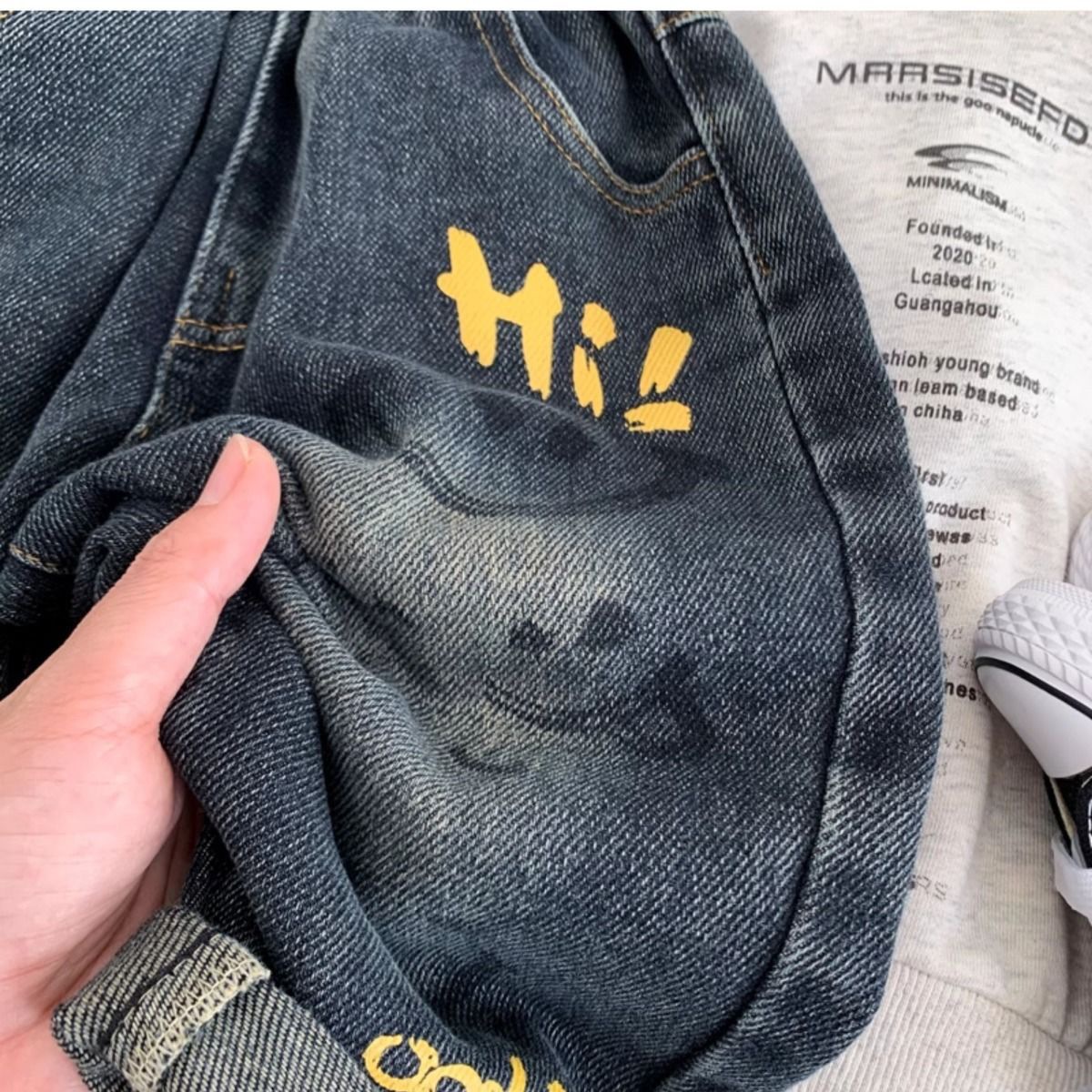 봄과 가을 남녀 아동복 청바지 아기의 서양식 어린이 성격 조수 점진적 컬러 편지 만화 할란 바지스토어 가기