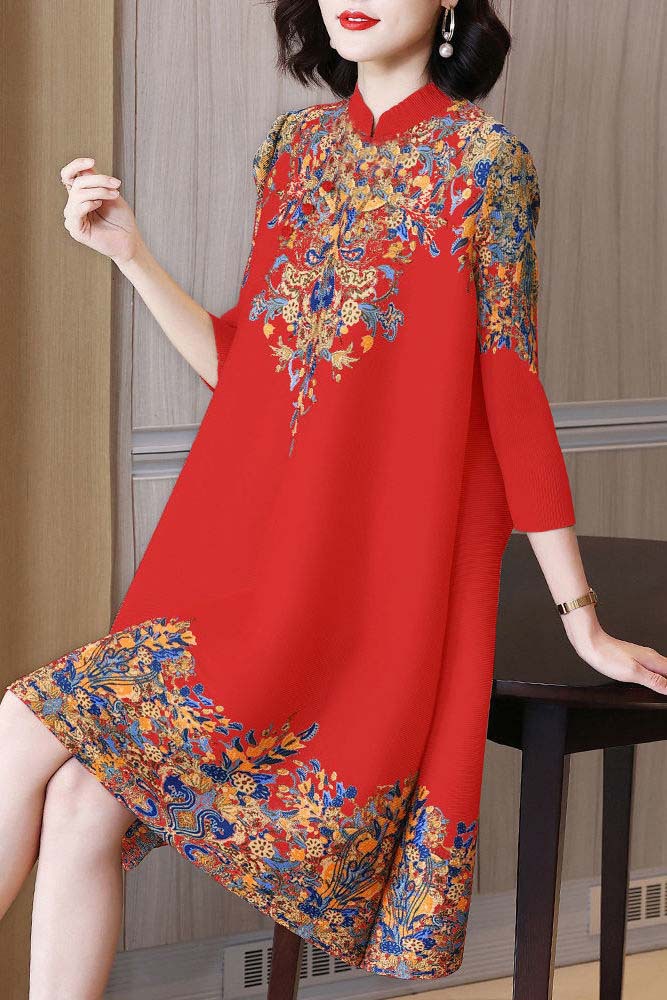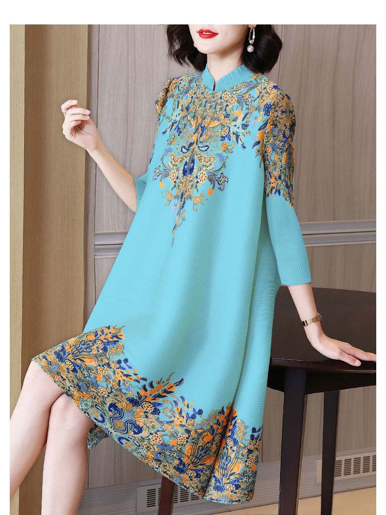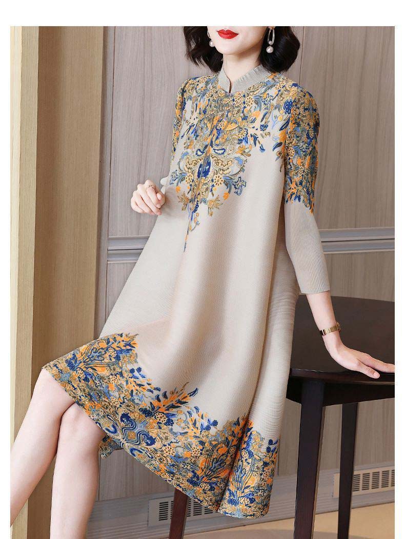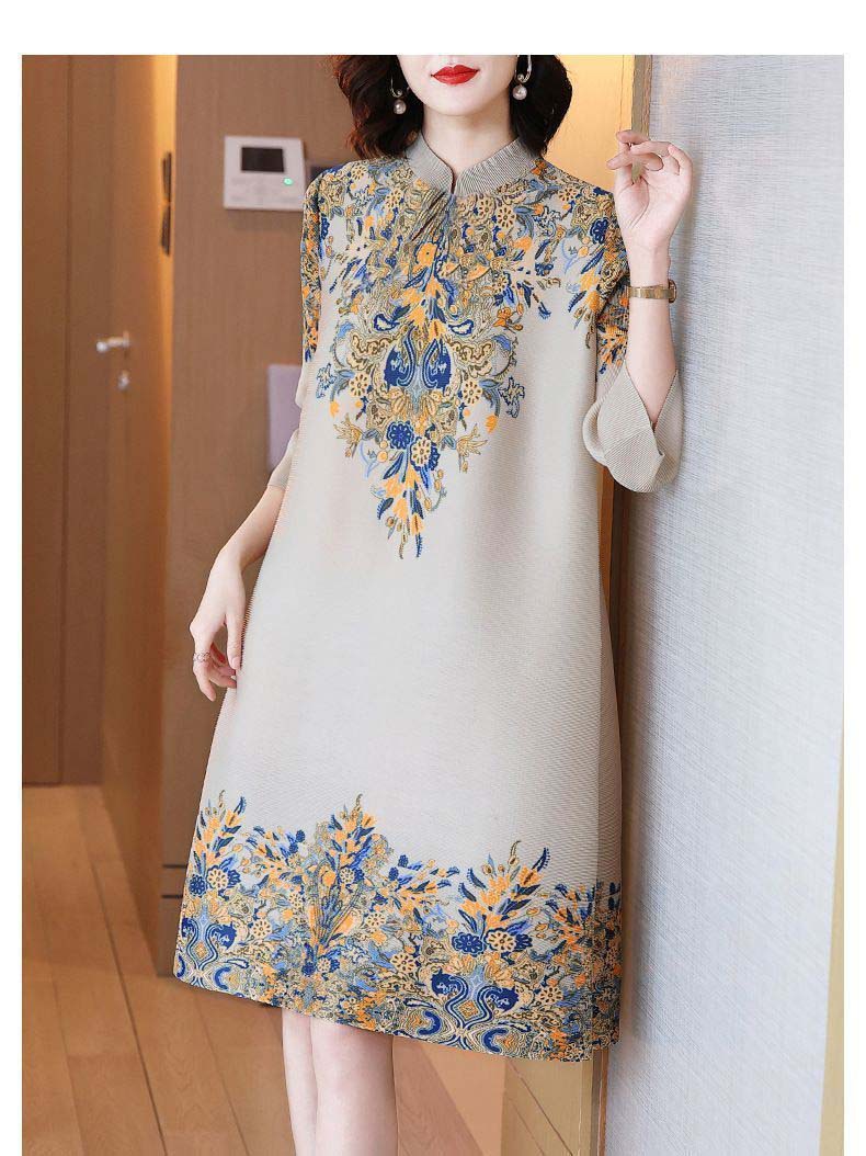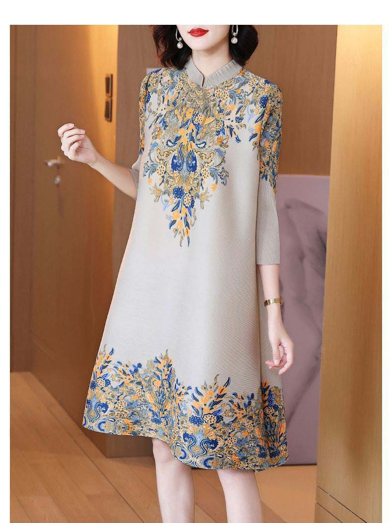 궈펑 빈티지 개량된 청삼 신설 2025 원피스 봄 · 여름 우아한 중년 어머니 플러스 사이즈 여성 중장 원피스스토어 가기