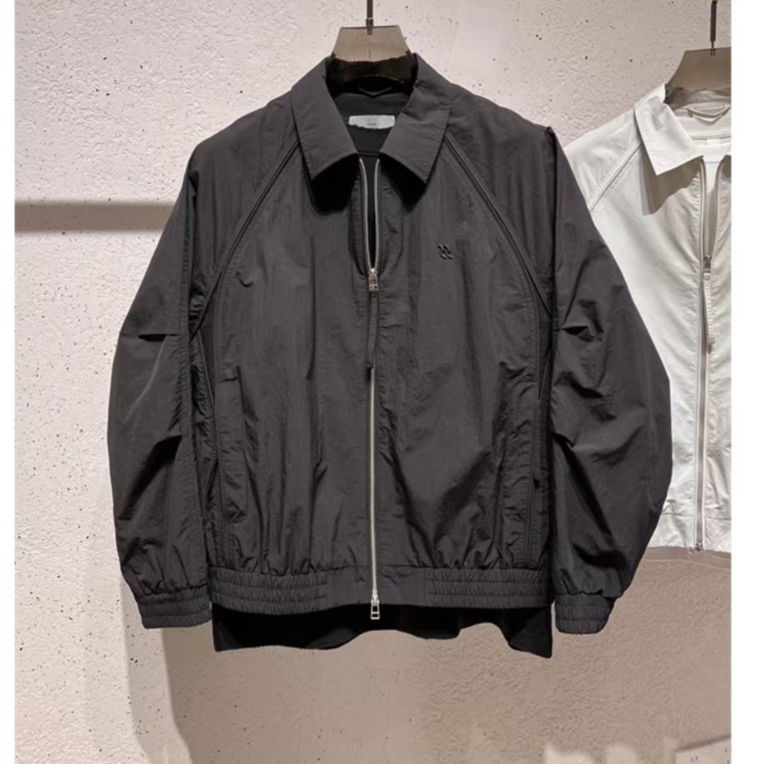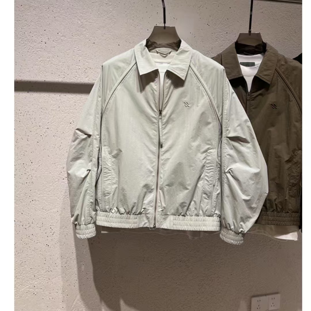 봄 새로운 오래된 돈 스타일 단색 라인 해체 스티칭 옷깃 캐주얼 더블 지퍼 재킷 코트 남성